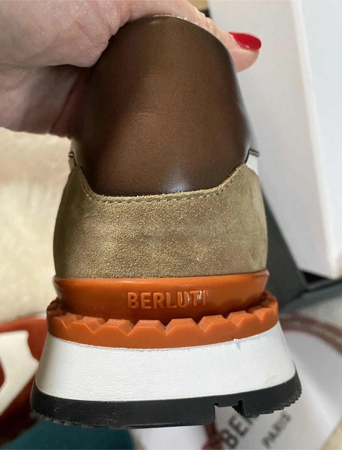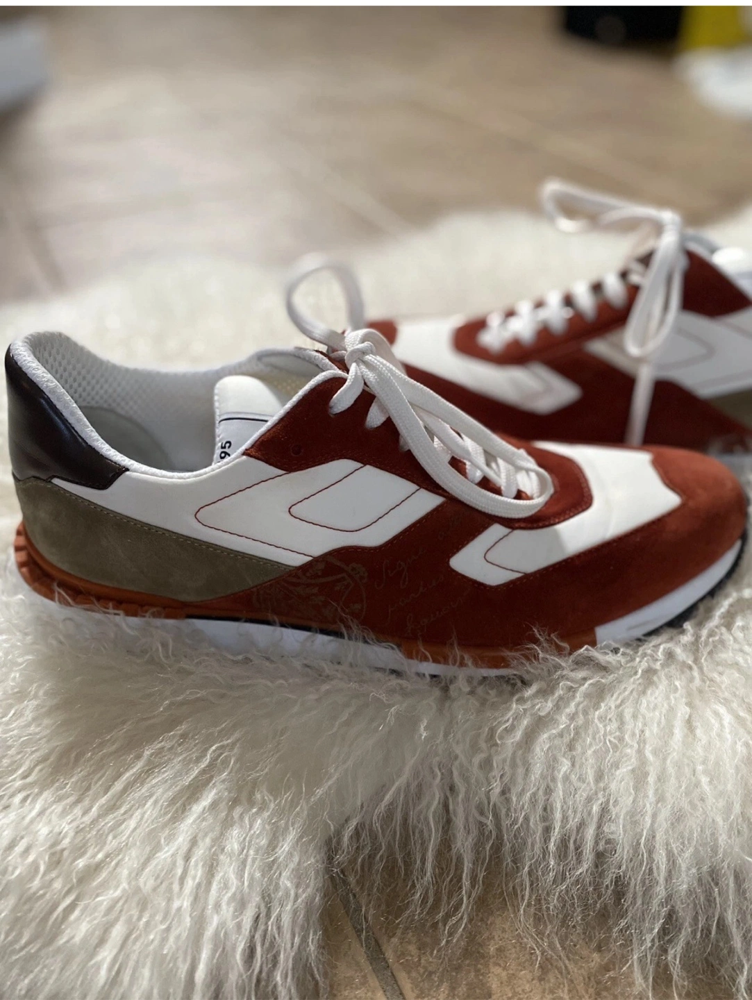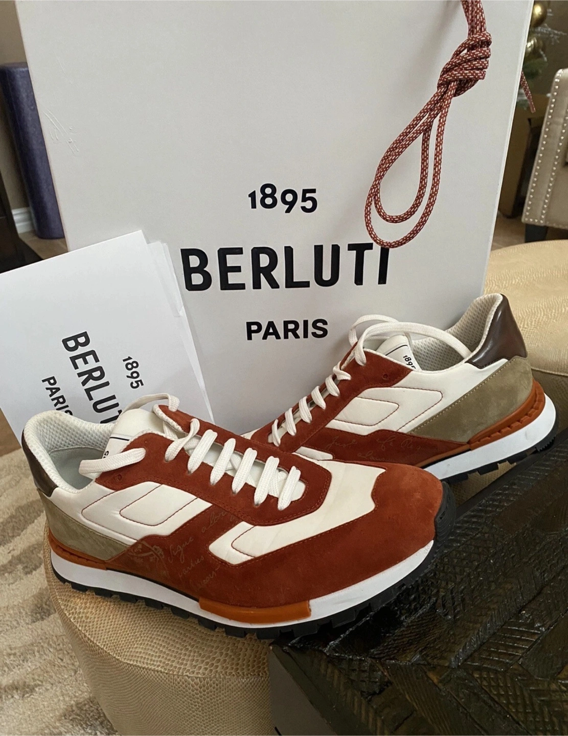 99ORIGINAL - AUTHENTIC BERLUTI These shoes are gorgeous and will elevate one's look instantly with a pop of rich colors and material. They are stylish sneakers. Featuring a combination of colors and textures. Consider wearing these shoes to relax on a nice day.