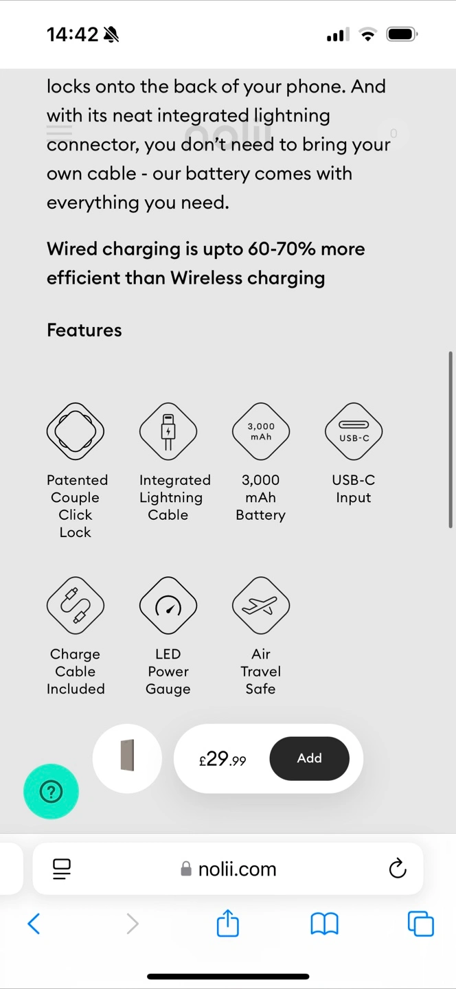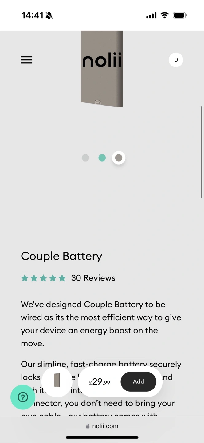 Nolii Couple Battery (thin portable lighting cable charger)