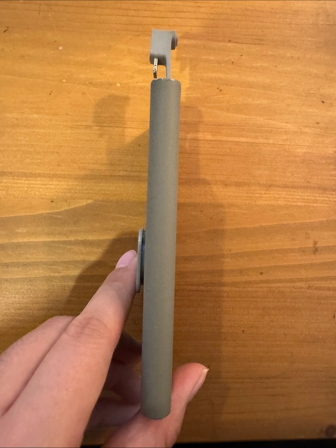 The sleek design is perfect for travel and easy to carry around. The gray color and rectangular shape is great for slipping into a bag. It has an integrated lightning cable.