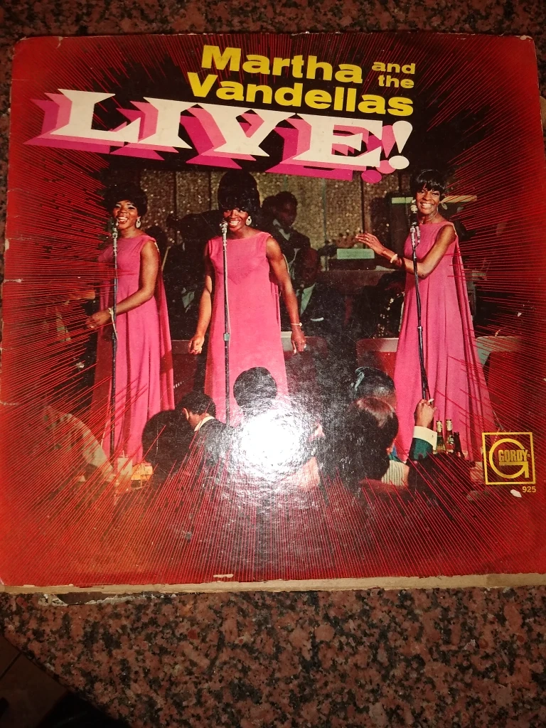 A vinyl record from Martha and the Vandellas. Album cover features a live performance with the band. Contains songs like 'Love Bug' and 'Nowhere to Run.' Enjoy this record to soothe your soul at the end of the day.