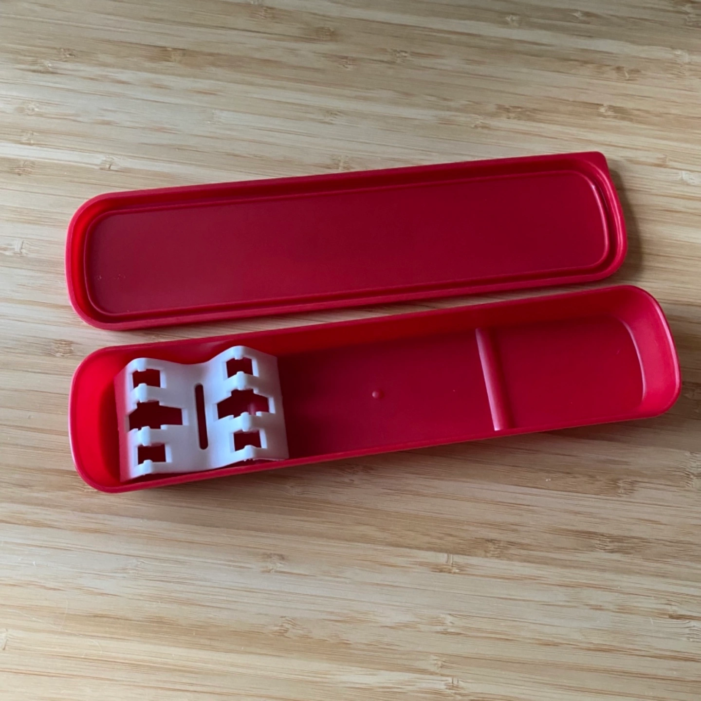 Brand New Hungry Panda red utensil case. Perfect for safely storing and carrying your eating utensils while on the go. Has a neat holder for fork, spoon and chopsticks in the case to keep them in place. Can be used for pencils and pens too. For pick up only