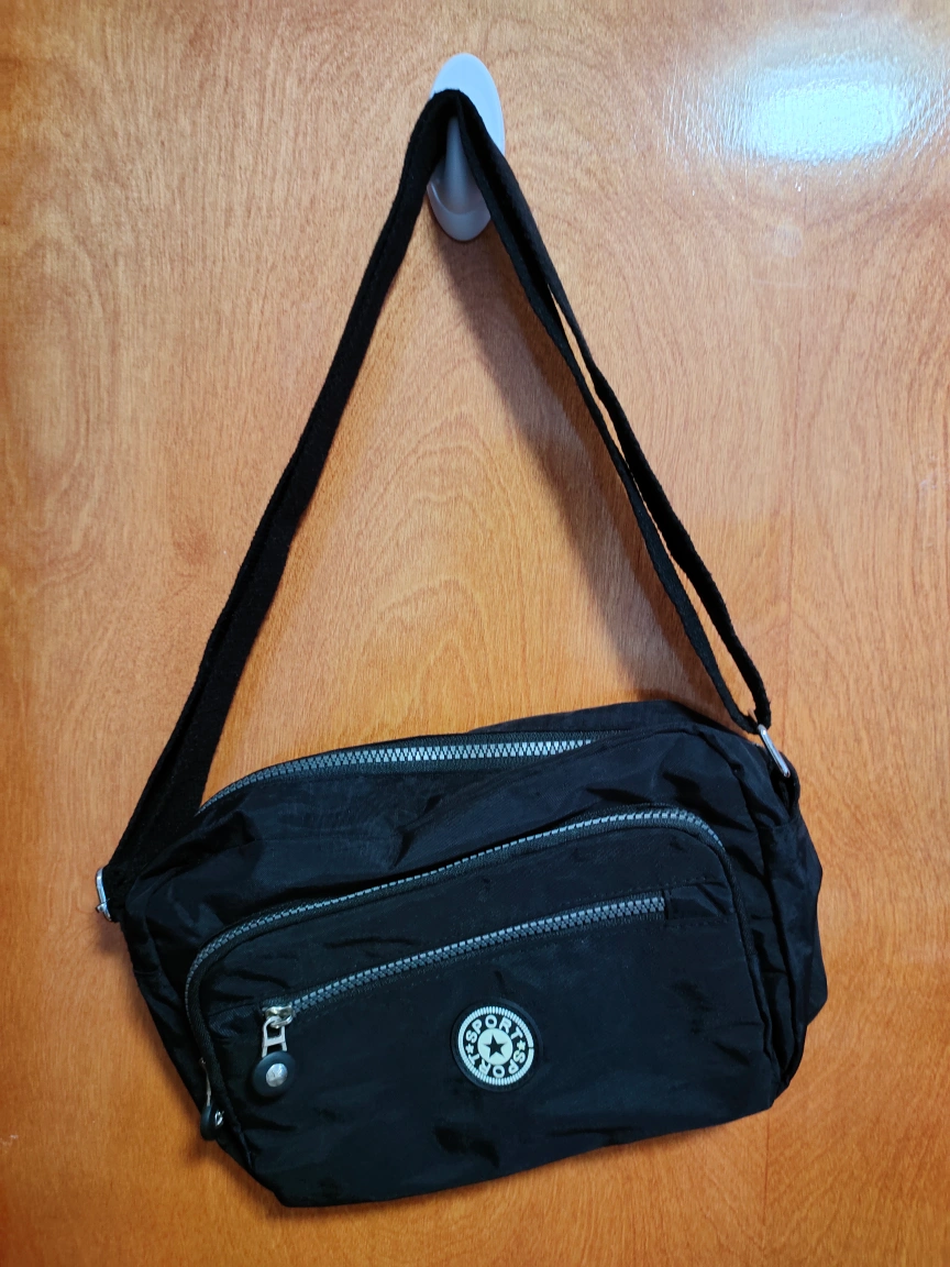 The black bag appears to be a good size for daily errands. It features multiple zipper pockets and a long adjustable strap. A great bag to take on your next walk. #freecycle ๐๐ฅ
