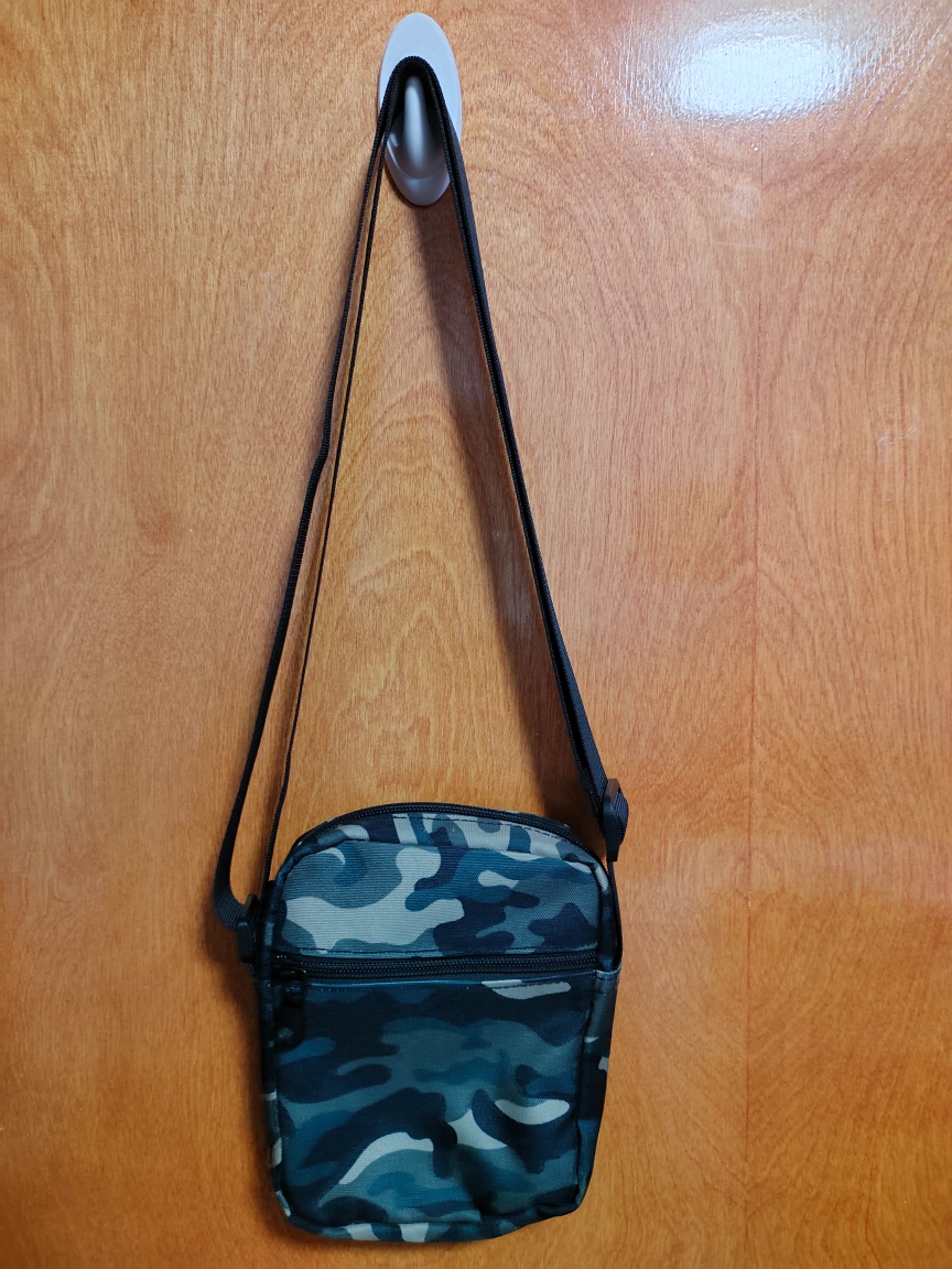 A small, square bag featuring a camouflage pattern. It has a black strap, a zipper pocket, and it looks very convenient for carrying your essentials. Keeping this bag on your person will bring you peace of mind. #freecycle ๐๐ฅ