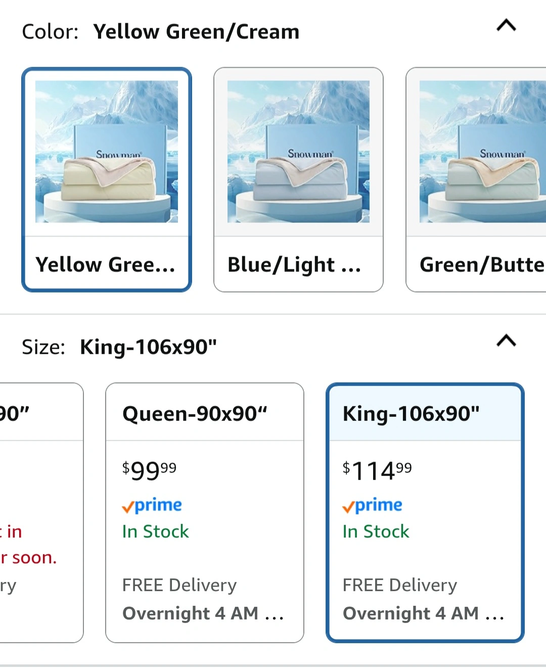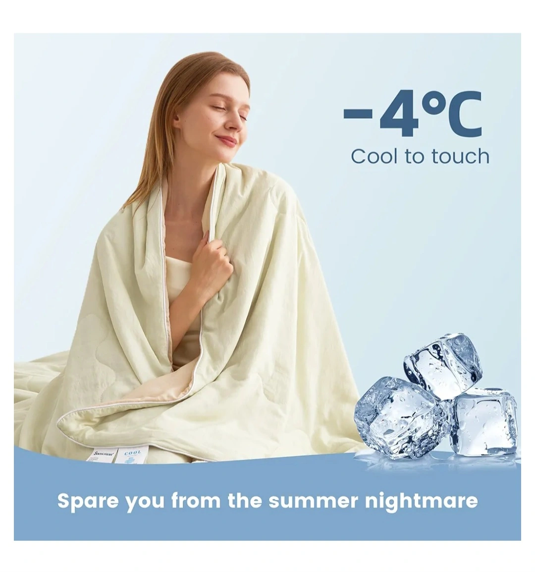 SNOWMAN Cooling Comforter King Size Double-Sided, Soft Cooling Blanket for Hot Sleepers, Cold Touch Fabric Summer Quilt, Lightweight Q-Max>0.4 Silk Smooth (Yellow Green/Cream, 106"x90")