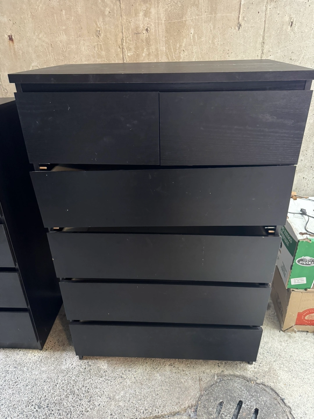 Black dresser with multiple drawers. The dresser has a rectangular shape. Organizing your belongings would be a breeze with this dresser.