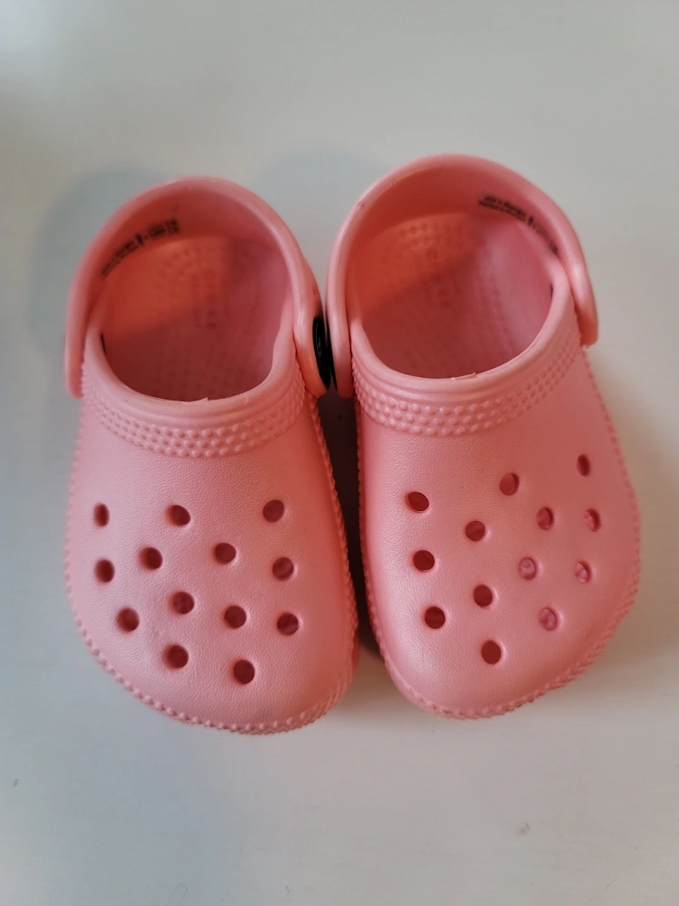 A pair of pink clogs. Feature holes on the top. Perfect for a casual day out, these clogs provide both comfort and style.