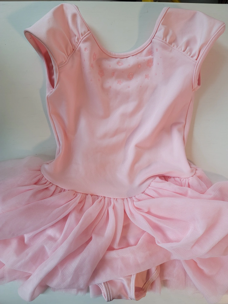 The pink ballet leotard with attached tutu. Sleeveless design, with a scoop back. Great for dance class, or for a fun dress up day.