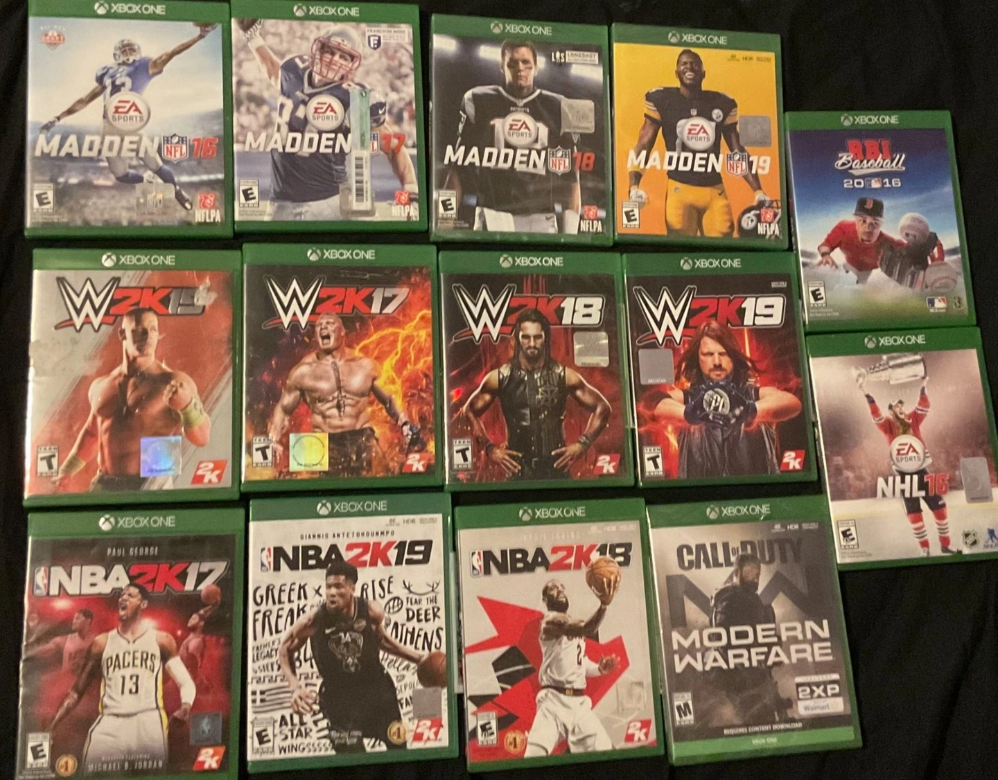 A selection of Xbox One games are available. Various sports games are included. There are also wrestling and action games. . Bundle of 14 Xbox one games In excellent condition 3 are still Unopened No scratches