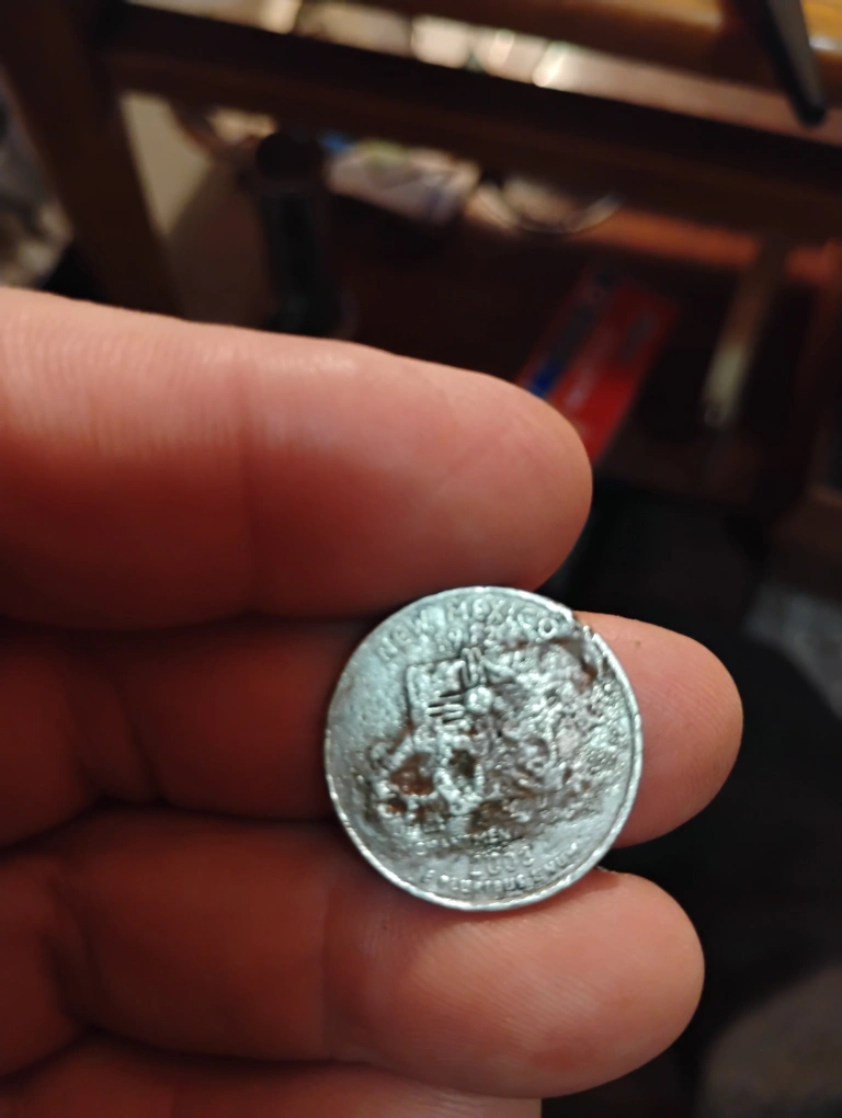 2008 Double Error New Mexico quarter.Has melted metal on both sides.These are called "struck through grease"coins .
