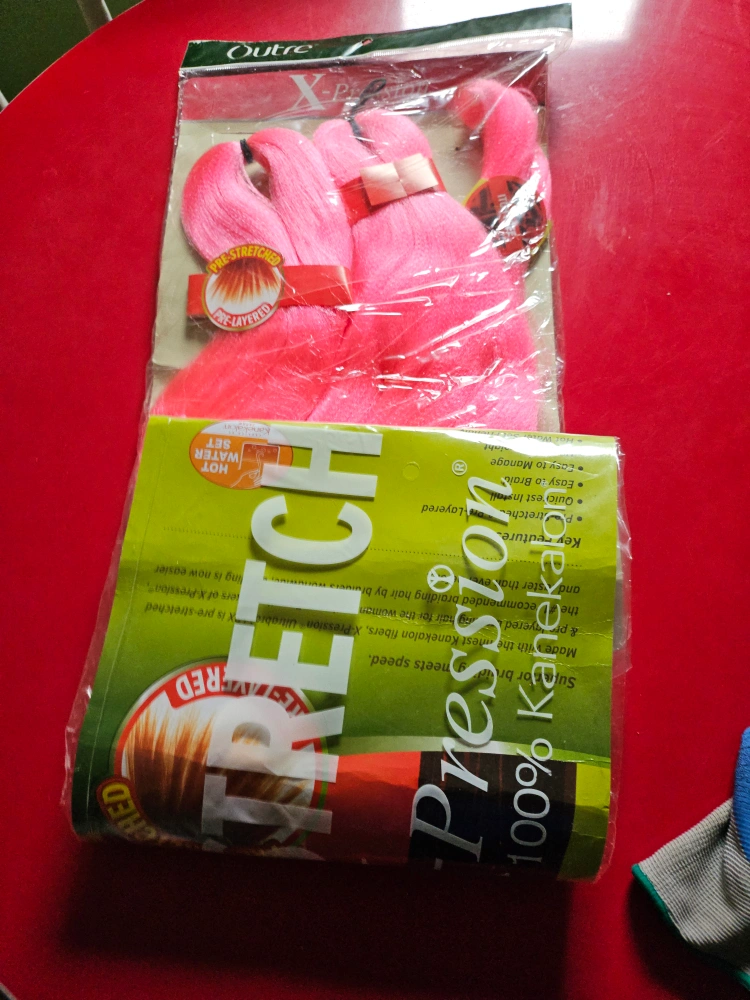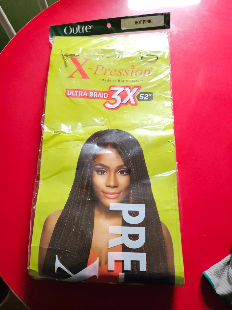 Bundle of hot pink braiding hair. The packaging shows the braid is ultra braid 3x and is 52 inches. Great for creating a fun and unique hairstyle.