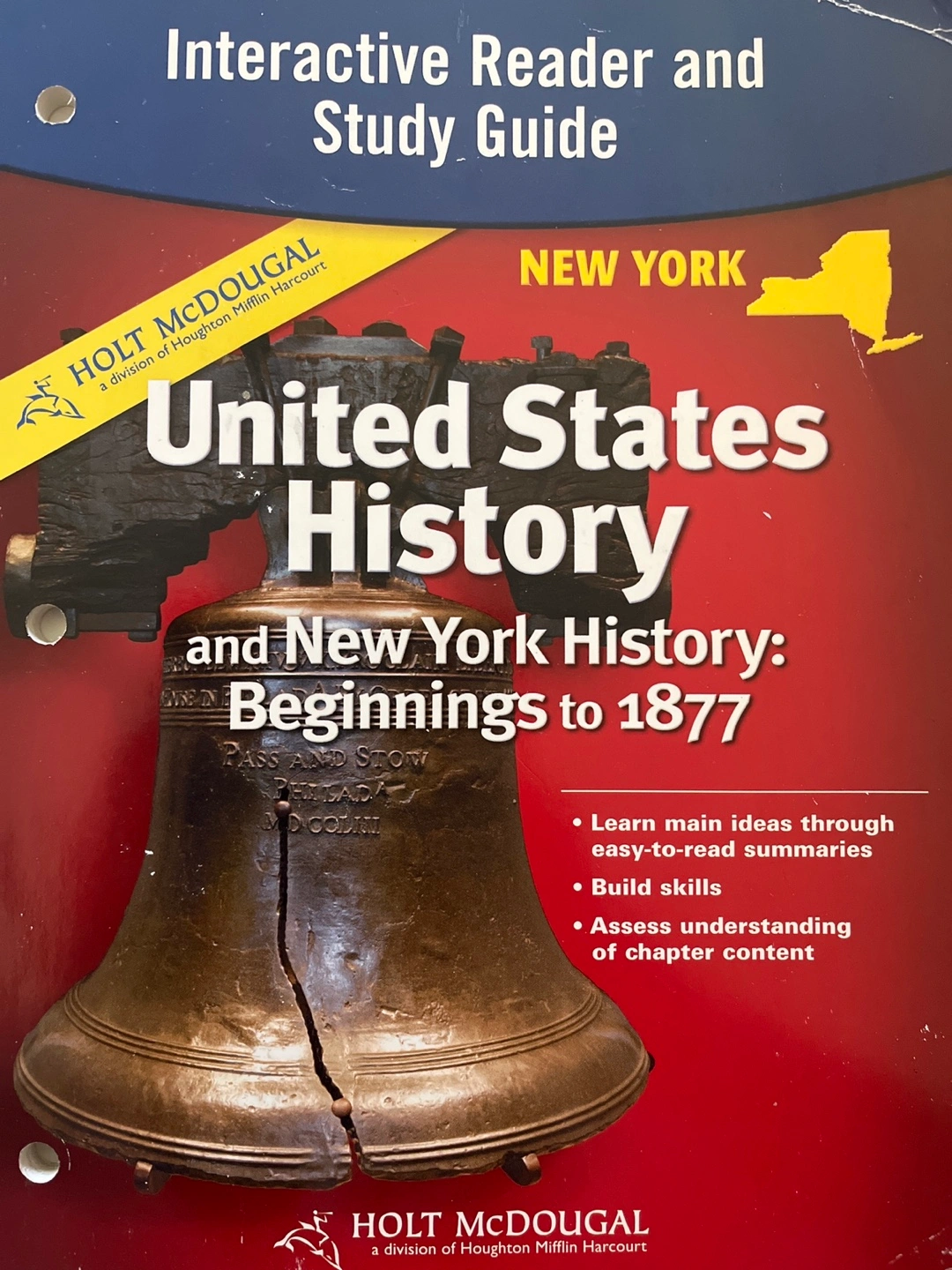 Holt McDougal Interactive Reader and Study Guide for United States History and New York History: Beginnings to 1877. Learn main ideas through easy-to-read summaries, build skills, and assess understanding of chapter content