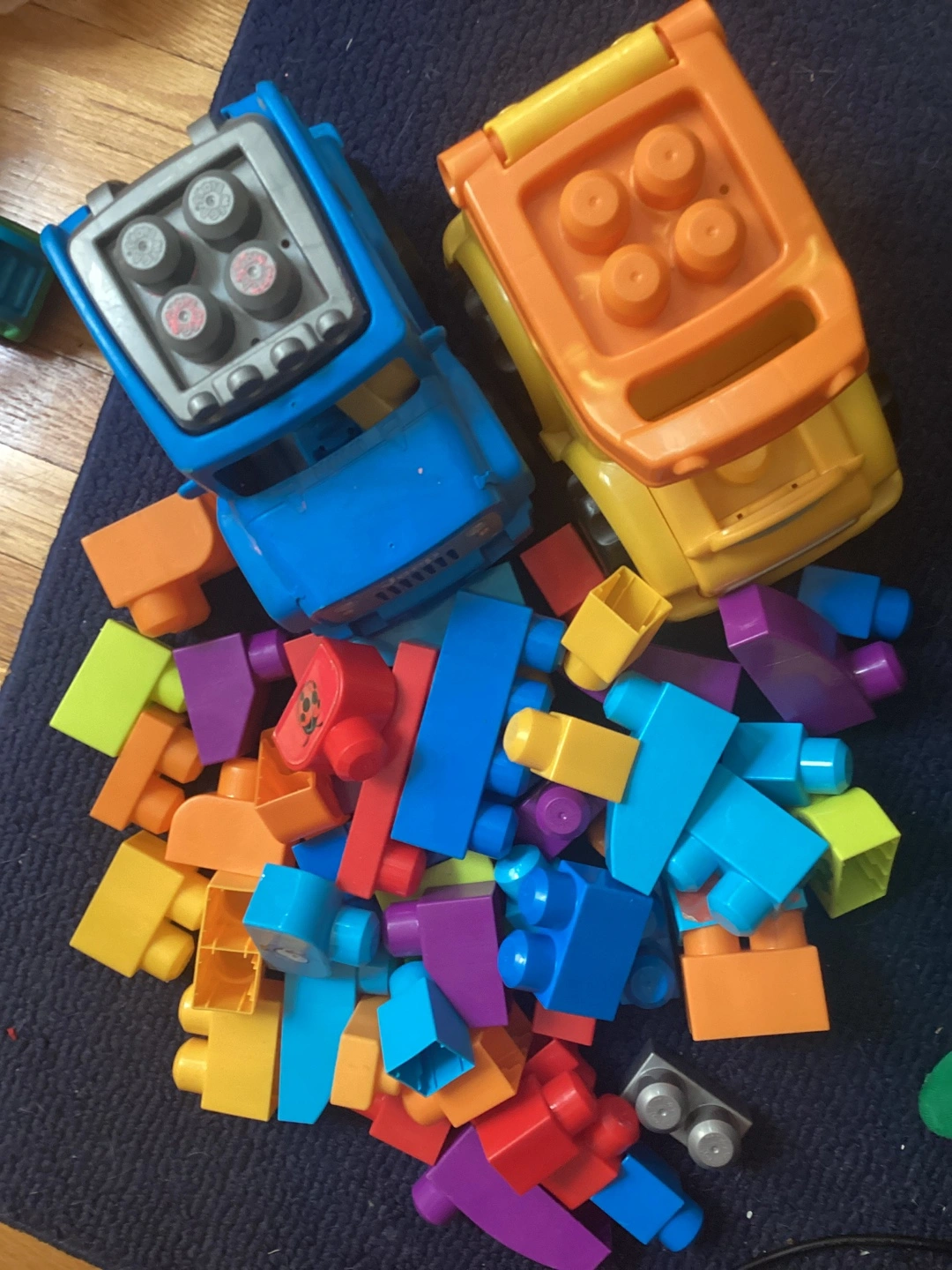 370A vibrant collection of large building blocks. Included are two toy trucks in bright colors. It's easy to unwind by building with these blocks. Check other listings - lots of kids items!