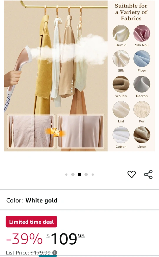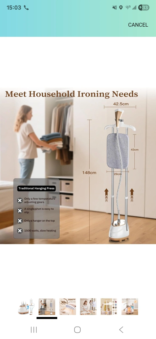 Steamer for Clothes,1800W Standing Garment Steamer with Adjustable Double Rod,Flat and Hanging Ironing,Clothes Steamers with 10 Ironing Modes,30s Fast Heat-up