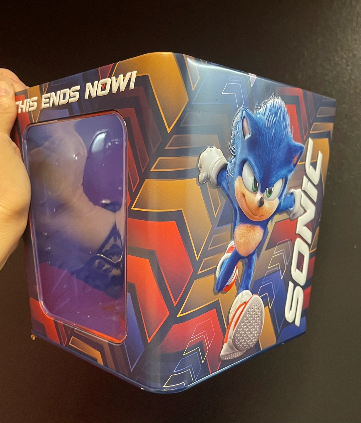 AMC Sonic the Hedgehog 3 Collectors Popcorn Bucket - brand new. This bucket has a cool window that allows you to see the popcorn side and when empty the decorative tin on the inside as seen in the pics.