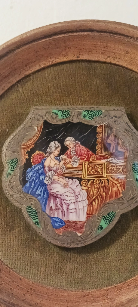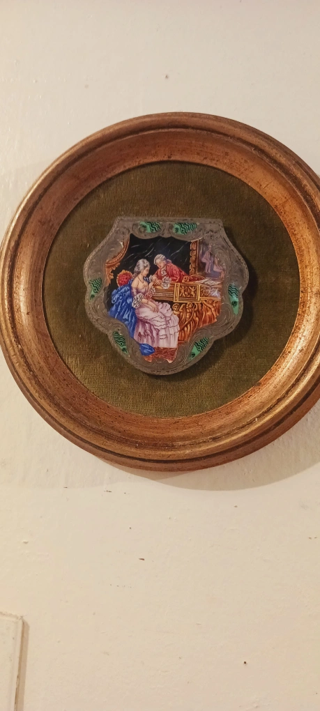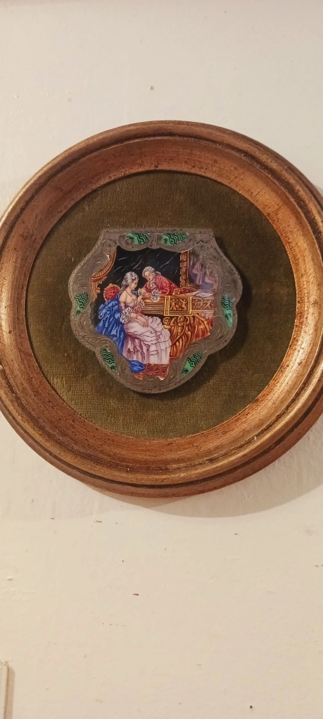Absolutely Gorgeous Antique French Enamel on Sterling Silver Miniature Artwork . 8" diameter. This beautiful painting would be the perfect addition to a small reading nook. Excellent condition. ALL MY PRICES ARE NEGOTIABLE !!!