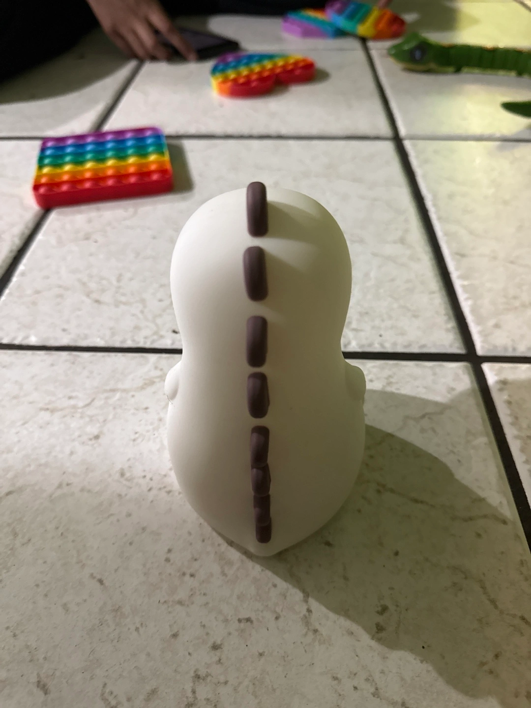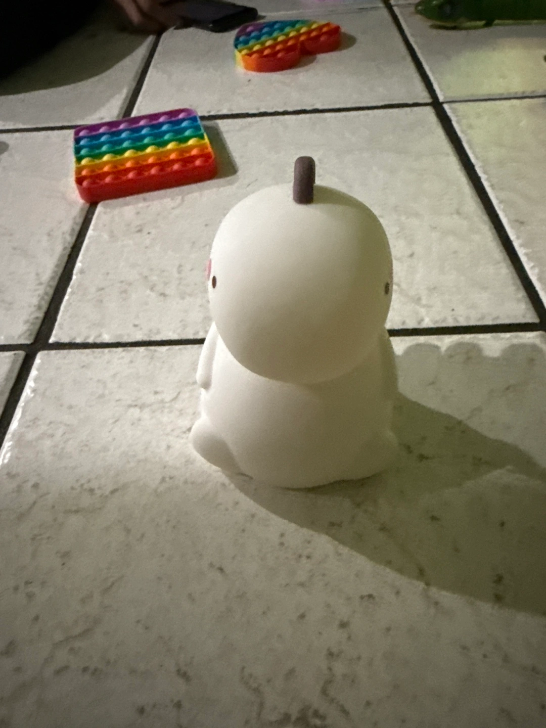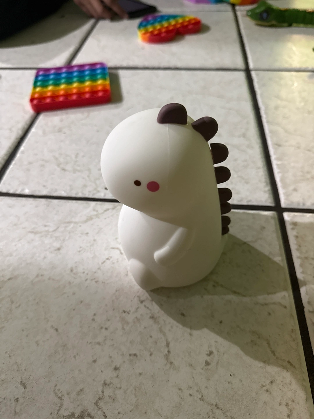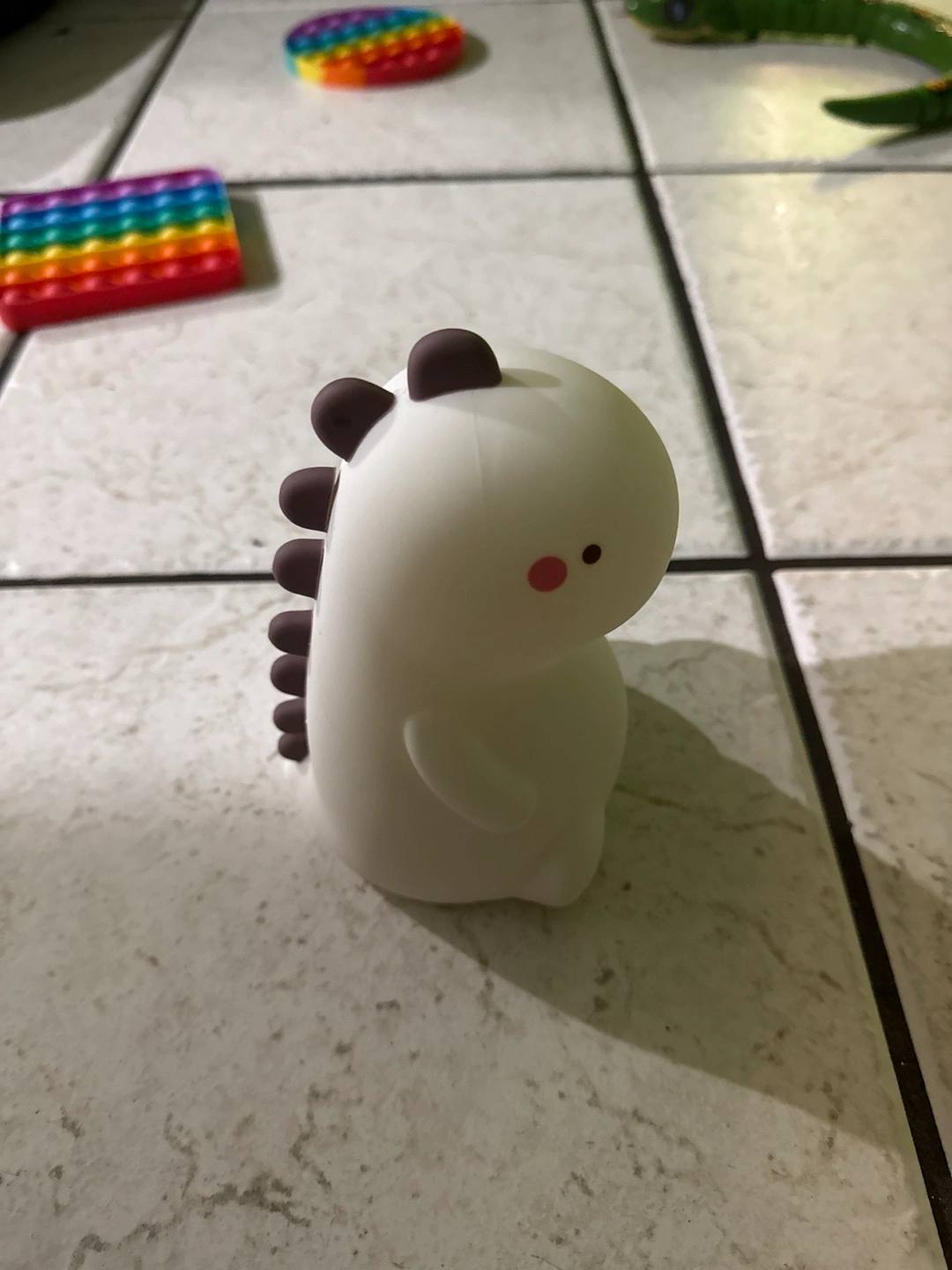 The night light is a cute white color. Features a dinosaur design, complete with a small fin. Perfect for providing a sense of security in a dimly lit space.