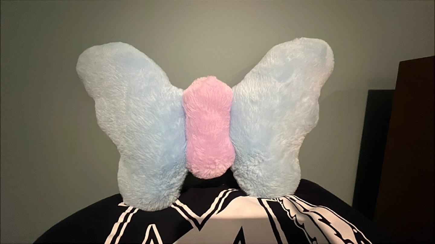 60Butterfly shaped pillow. Made with a soft, plush material. This would be perfect to relax with after a long day.