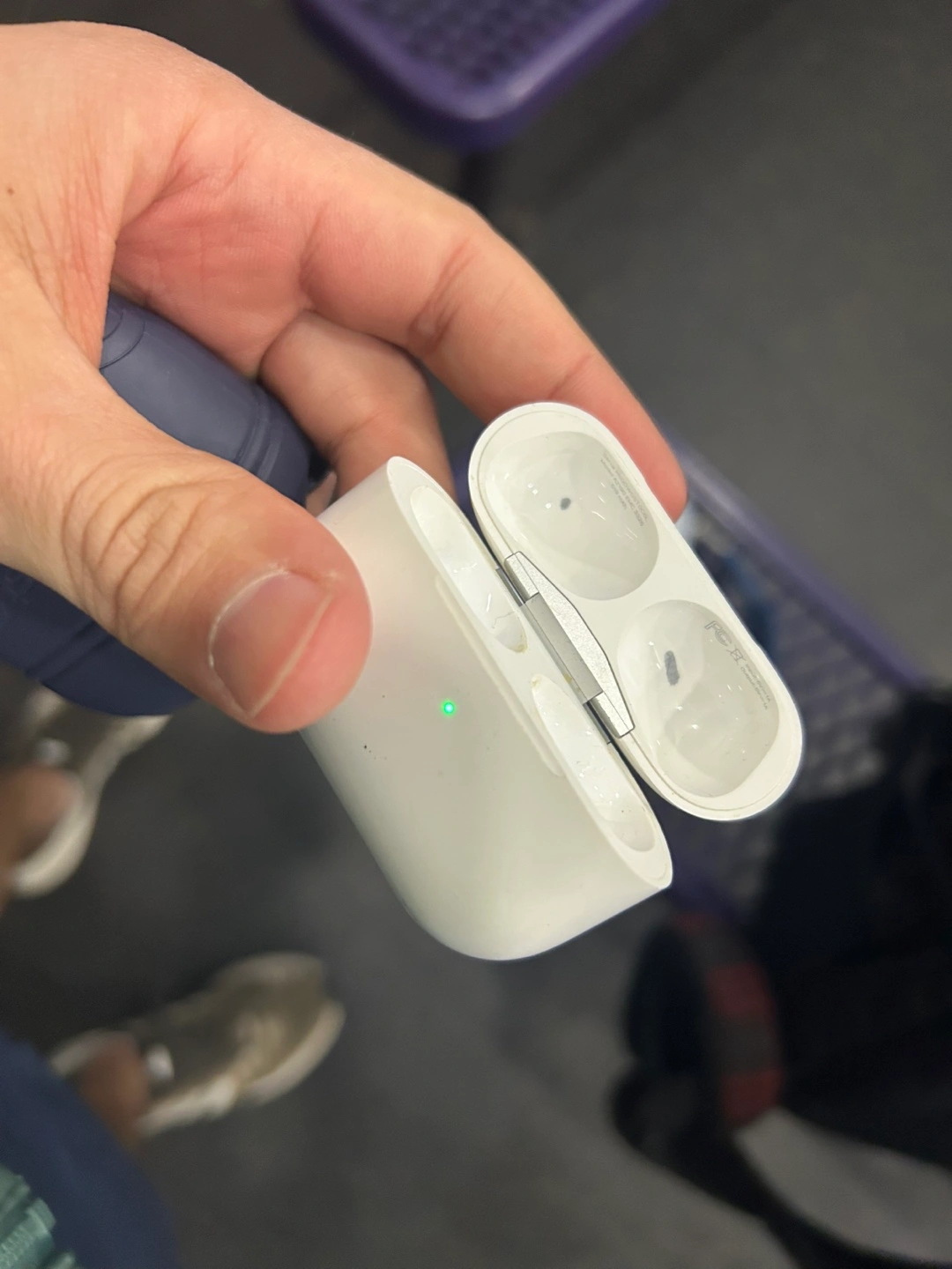 28White charging case for AirPods. The case is open. A great way to enjoy your favorite music or podcasts.
