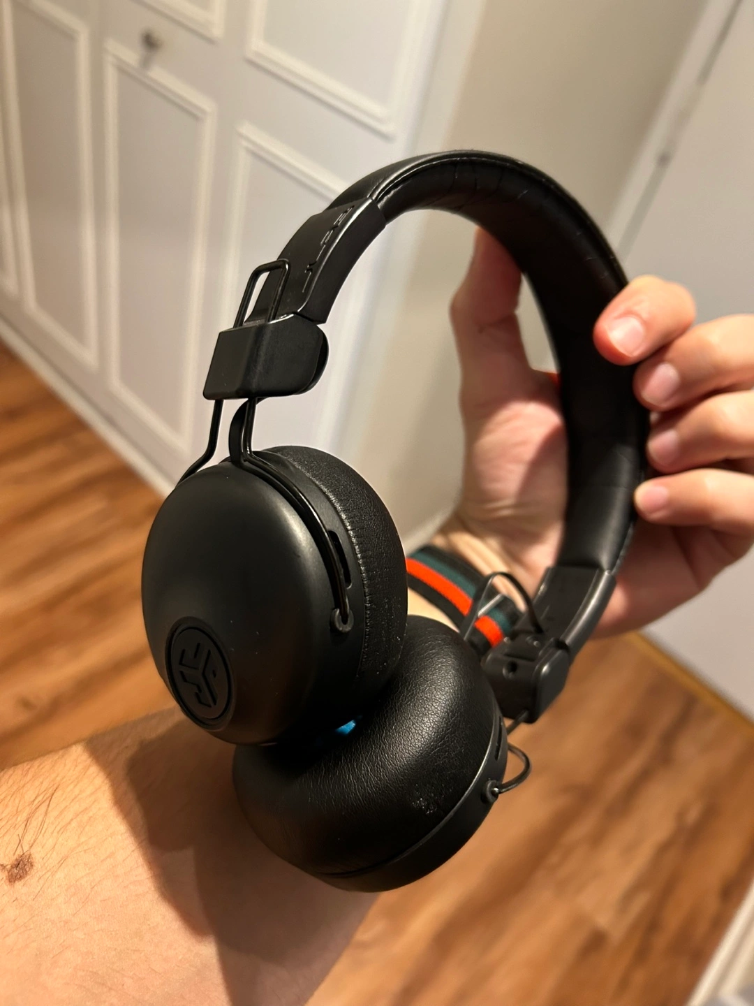 28Over-ear headphones in black. Adjustable headband, and cushioned ear cups. Perfect for listening to your favorite music. Just put them on and relax.