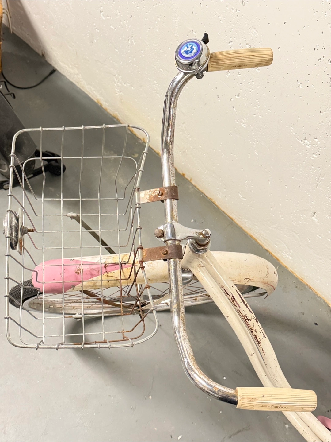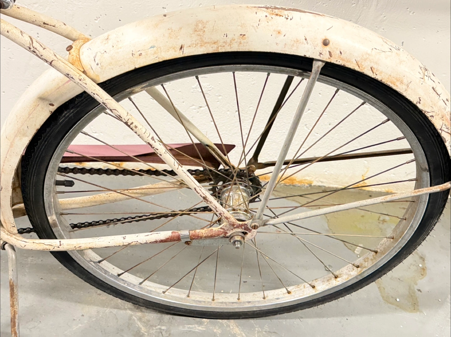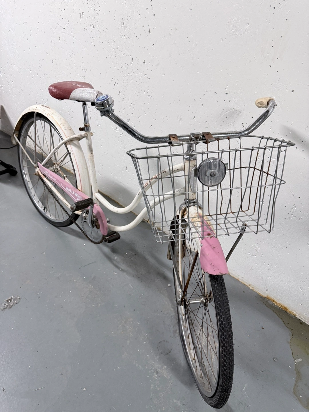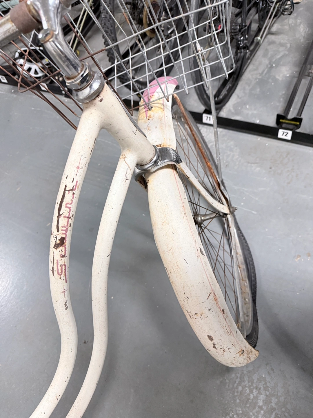 1000+Vintage 1970s Schwinn Hollywood Bicycle – Mostly Original Parts! This is a classic Schwinn Hollywood model in beautiful white with rose pink accents, matching fenders, and a charming front basket. The bike features an original step-through ladies frame and fork with factory paint and decals still intact. It includes: • Schwinn screen-style chainguard • Wide cruiser handlebars • Schwinn cruiser saddle • Original Schwinn grips and pedals • Full fenders • And more original components It’s equipped with a vintage 2-speed kickback hub and coaster brakes—just pedal slightly backward to brake or shift gears. These are super fun to ride, especially if you’ve never tried one before! Specs: • Tire size: 26 x 1.75” (tires replaced about 18 months ago) Flat tube at front tire!!! • Seat post clamp height from the ground: approx. 28” • Crank center to seat post clamp: standard cruiser geometry Brakes are in good working order, and the bike has been stored under cover in a dedicated bike room. Whether you’re riding it around town and turning heads or planning a full vintage restoration, this Schwinn is both a conversation starter and a rideable piece of history. I love this bike, but it deserves a new home where it can be appreciated and enjoyed. 🙏