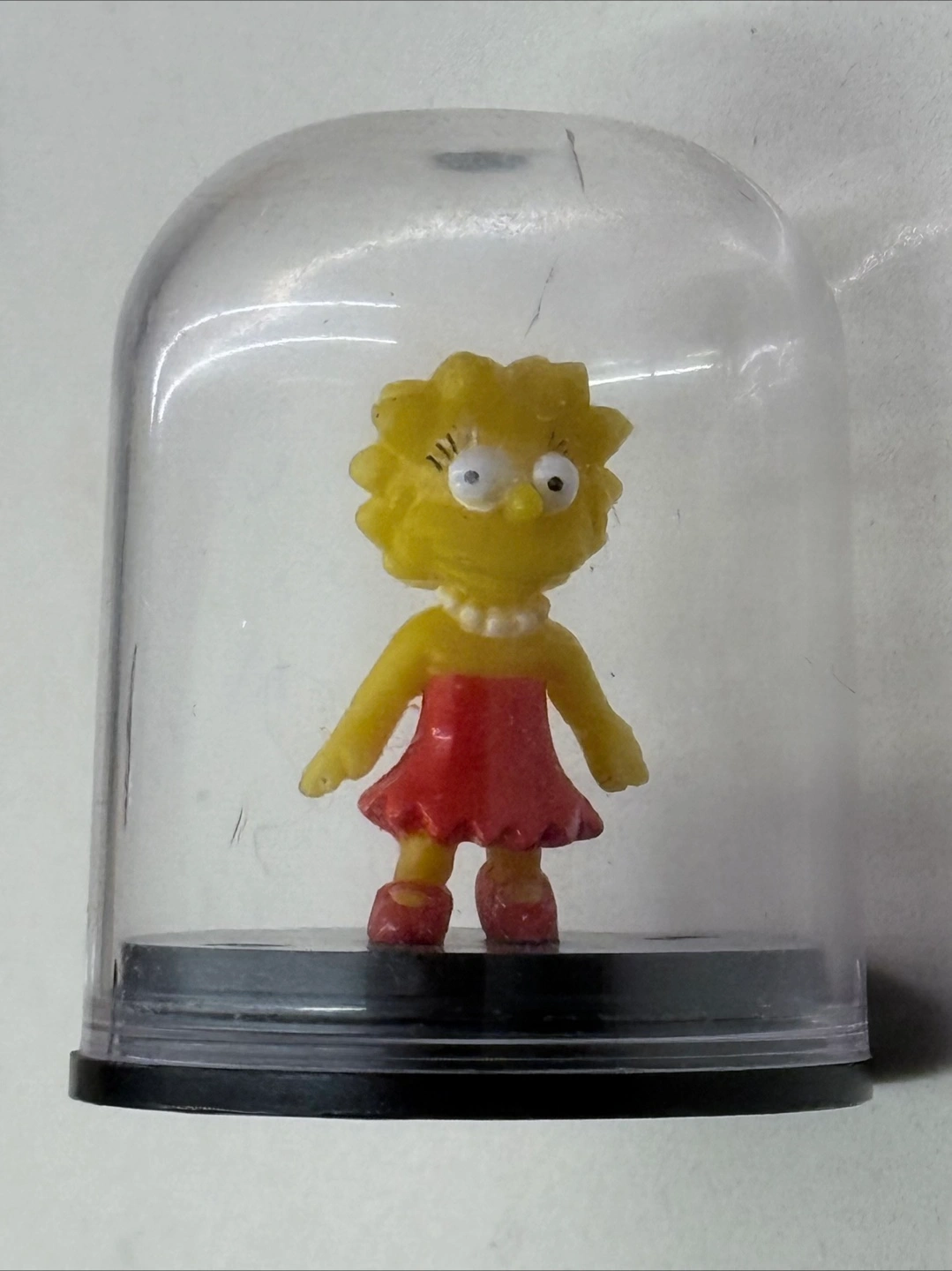 1000+Lisa Simpson figurine encased in a clear dome. The base is black and marked "Made in China". A fun collectible for any Simpsons fan! Vintage condition 2.5”H