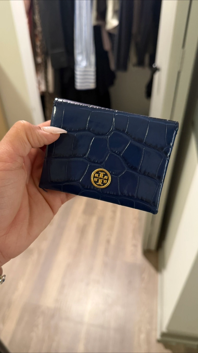 Selling a cute Tory Burch card case in a navy croc print! It's in great condition and perfect for carrying your essential cards. Features the iconic Tory Burch logo
