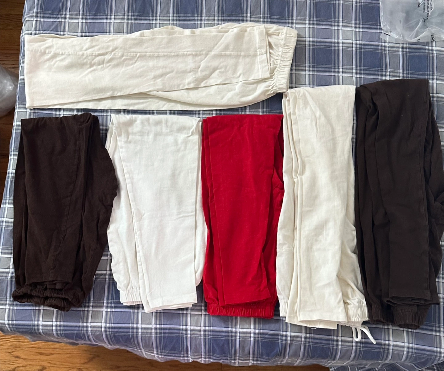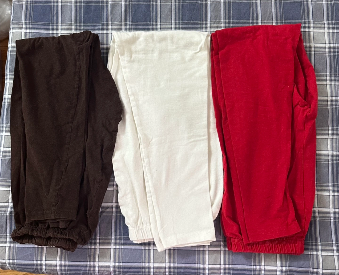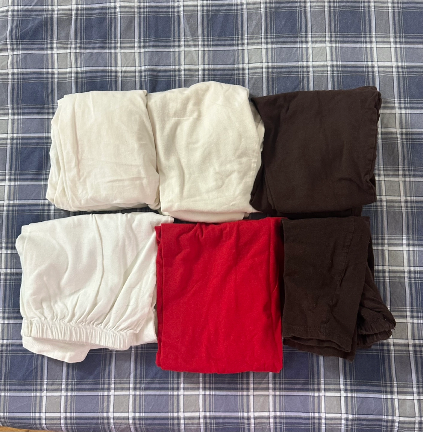 Set of 6 leggings in assorted colors. They are in good condition and ready for a new home!
