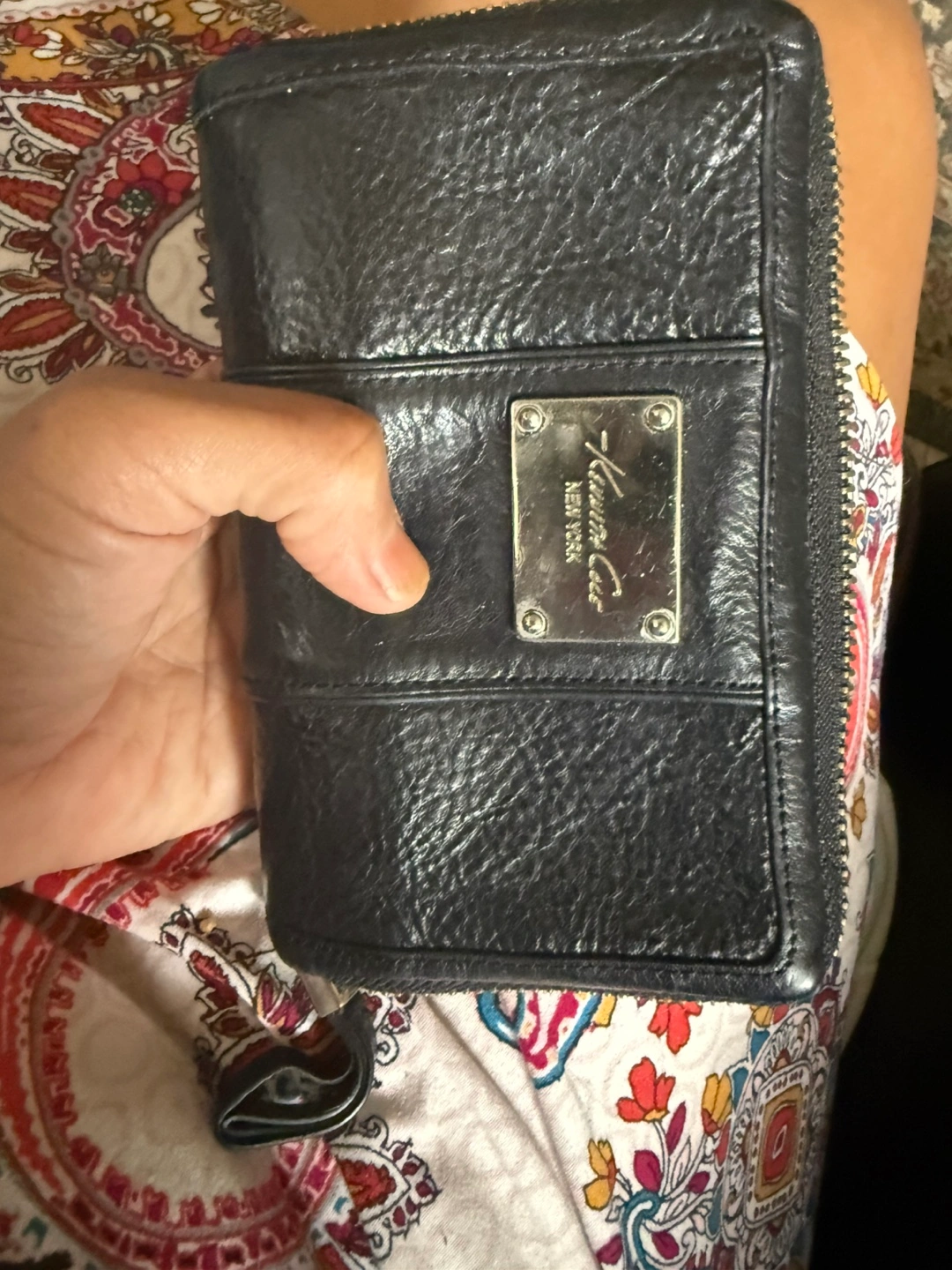 356Selling a Kenneth Cole black leather wallet. It's in good condition and has a lot of space for cards and cash and a cell phone. The wallet has a zipper closure to keep everything secure.
