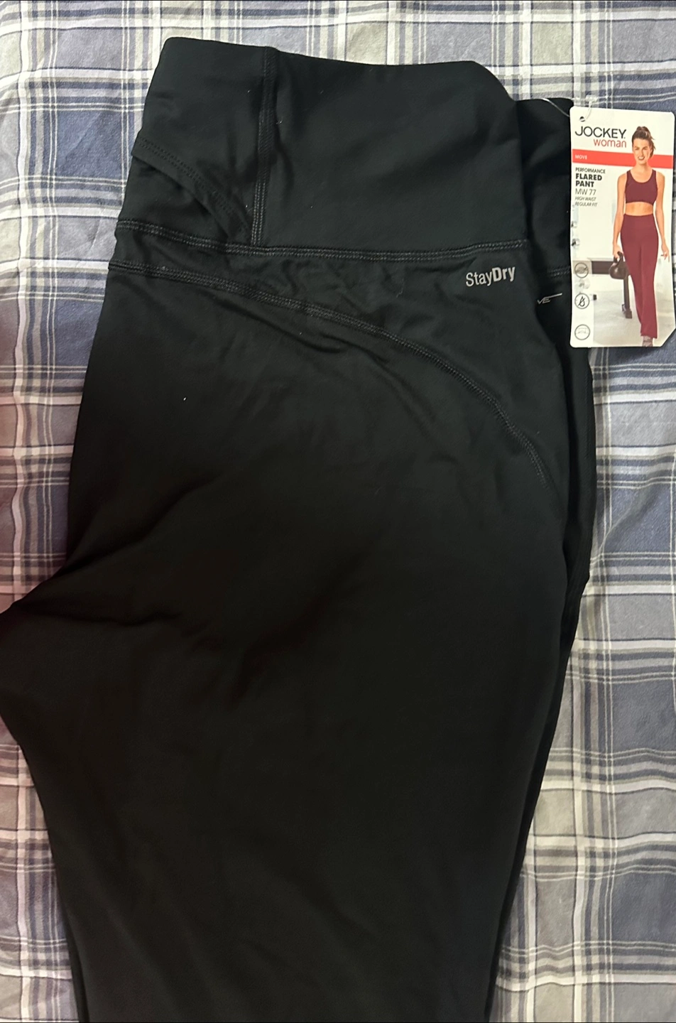 New Jockey StayDry flared bootcut pants in black., ready for a new home! The pants are designed to keep you dry and comfortable during workouts or everyday activities