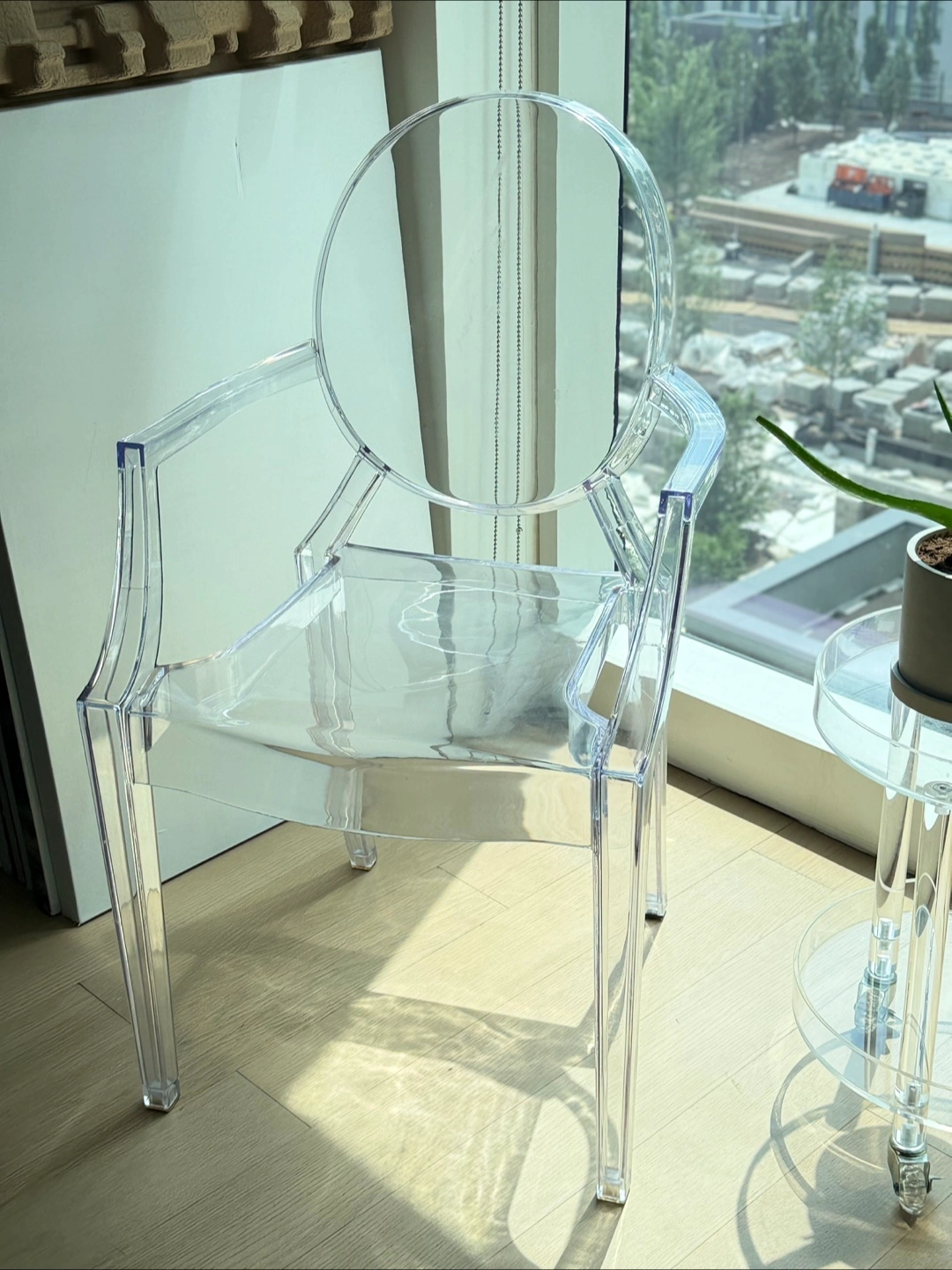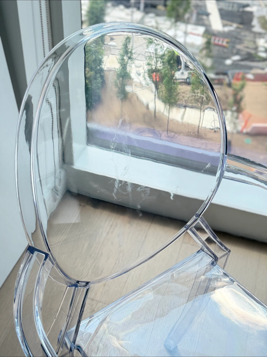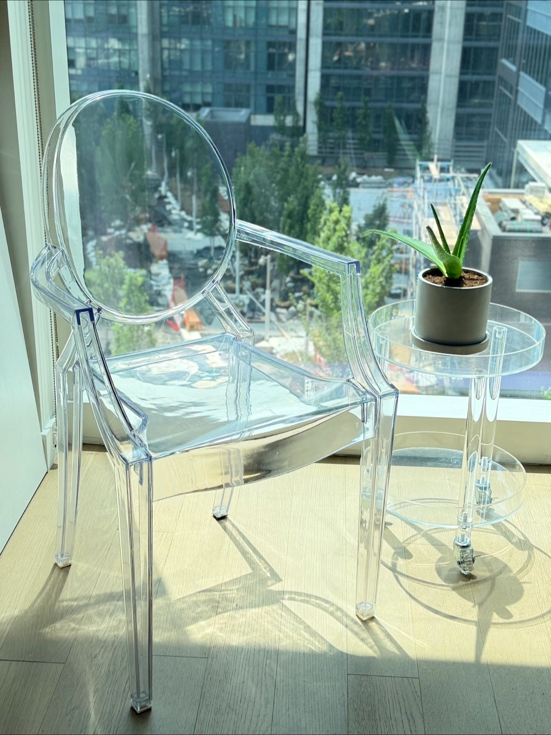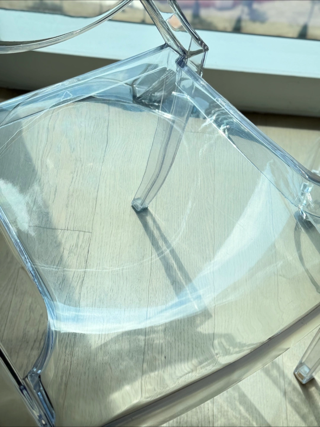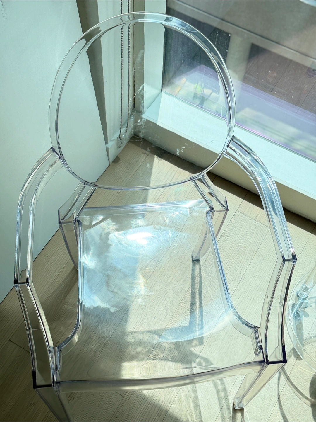 1000+The replica Ghost chair, resembling a modern interpretation of a Louis XVI armchair, is made by Kartell, according to Home & Decor Singapore. It was designed by Philipp Stark Ghost Chair is an exceptional piece that merges effortlessly with any theme or color scheme that you already have going in your space. This reproduction Ghost Chair is sturdy and durable while displaying a delicate, ethereal, alluring appearance. You can pretty much choose a dining table in any material or finish to go along with these versatile ghost style chairs. Suitable for indoor and outdoor use in residential and commercial settings, you will find them in the chicest parts of the world that adds elegance and lively panache to any number of settings. Features: - Unbreakable polycarbonate construction - Shock, scratch and weather resistant - Single-piece injection-molding process - Recommended for residential and commercial use - Suitable for indoor and outdoor use - Classic and comfortable - High quality reproduction - Condition used with scratches on the surface. Discounted for this reason! Dimensions: Overall Product Dimensions: 21"L x 22"W x 36"H Seat Dimensions: 18.5"L x 11.5 - 16"W x 18.5"H Armrest Height: 26.5"H Backrest Dimensions: 17"H