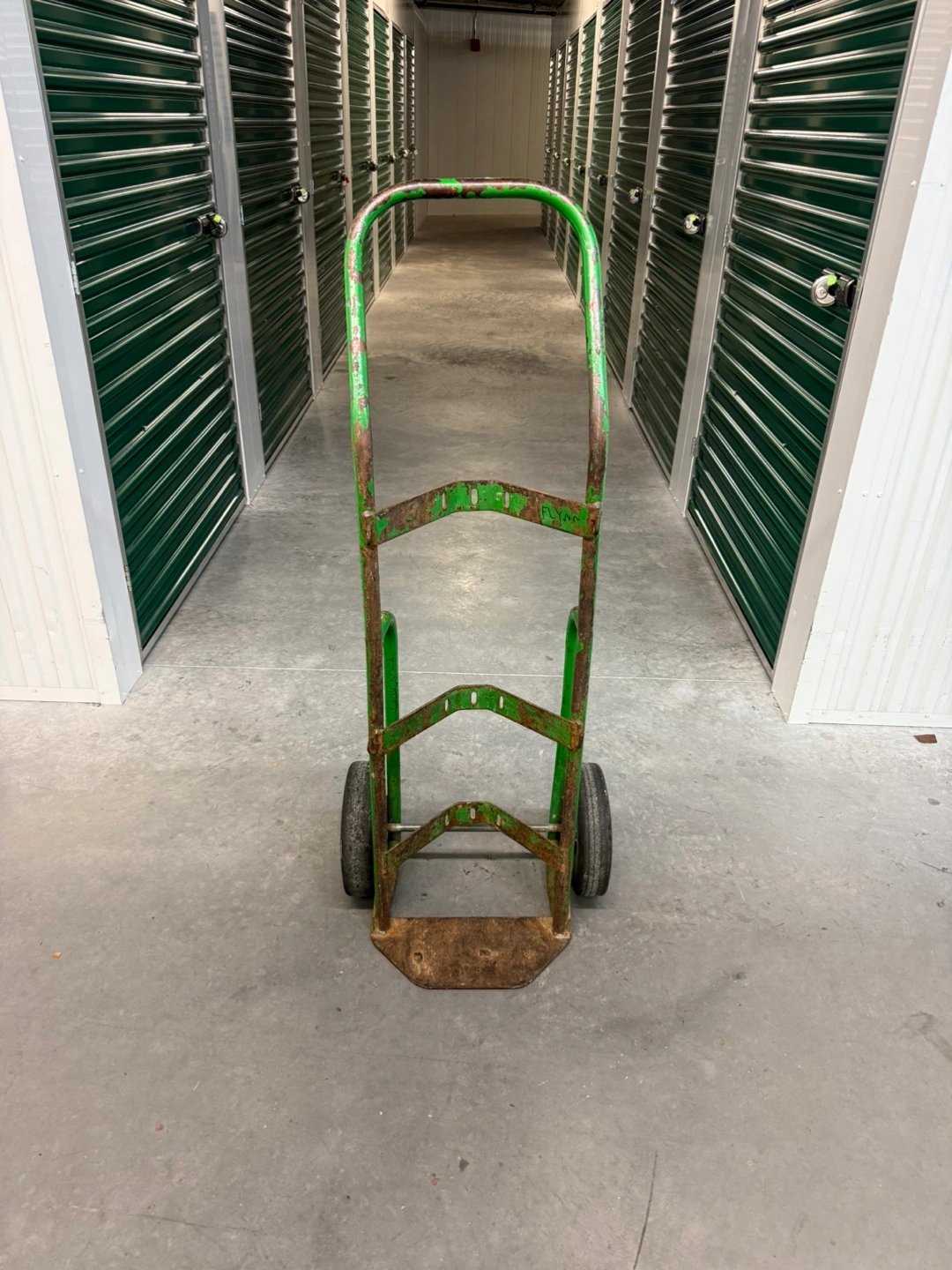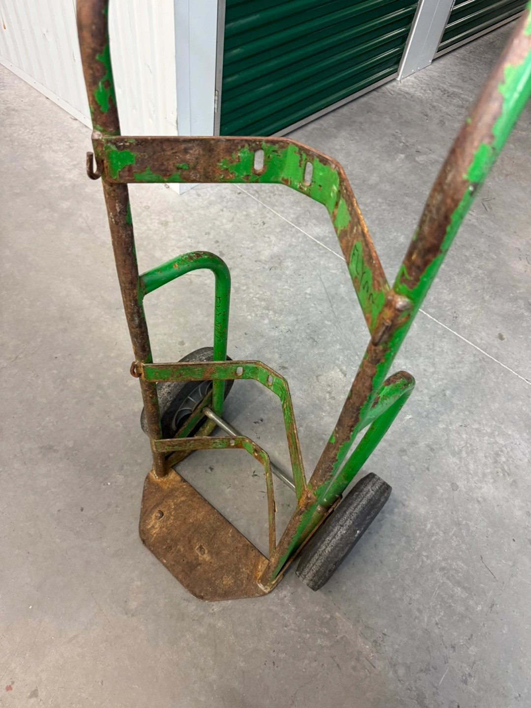 Selling a used hand truck or dolly. It's green and shows signs of wear, but it's still functional and ready to help you move items! Item is located in Yonkers, NY 10704 —— Delivery available for an additional charge