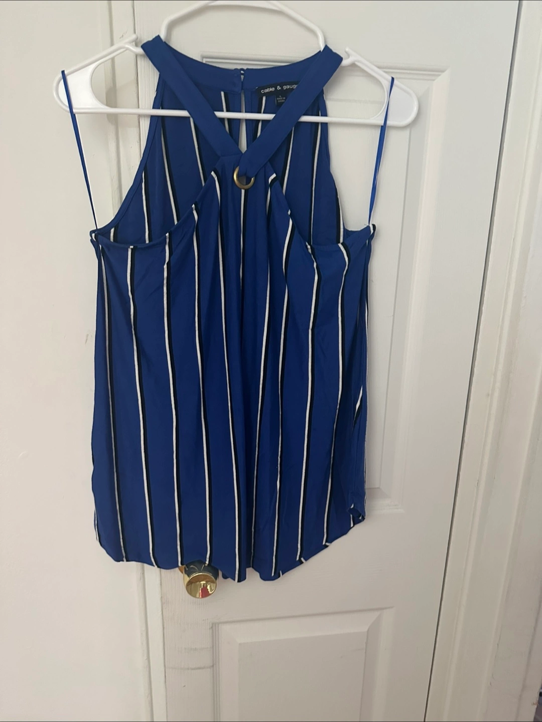 New!! cute Cable & Gauge halter top in a striking blue with white and black stripes! Perfect for a stylish, breezy look! ALL MY PRICES ARE NEGOTIABLE!!!