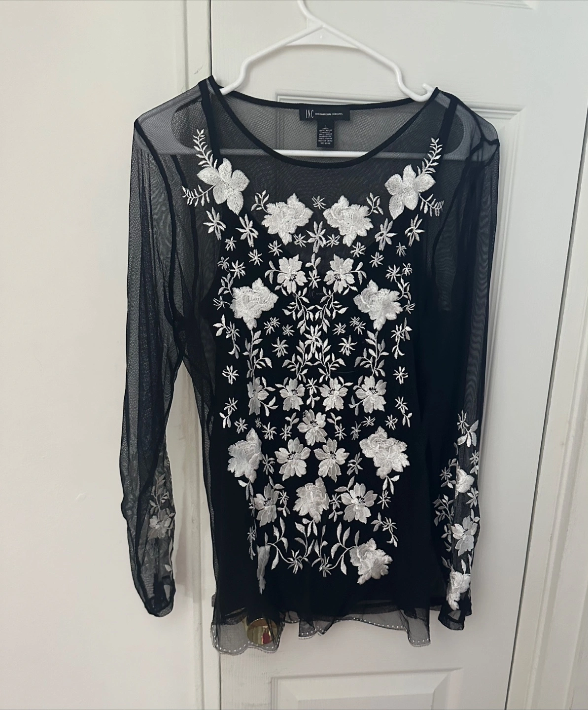Selling a beautiful black floral top from INC International Concepts in size L. The top perfect for a lightweight and stylish look. The intricate floral design adds a touch of elegance to any outfit! ALL MY PRICES ARE NEGOTIABLE!!!