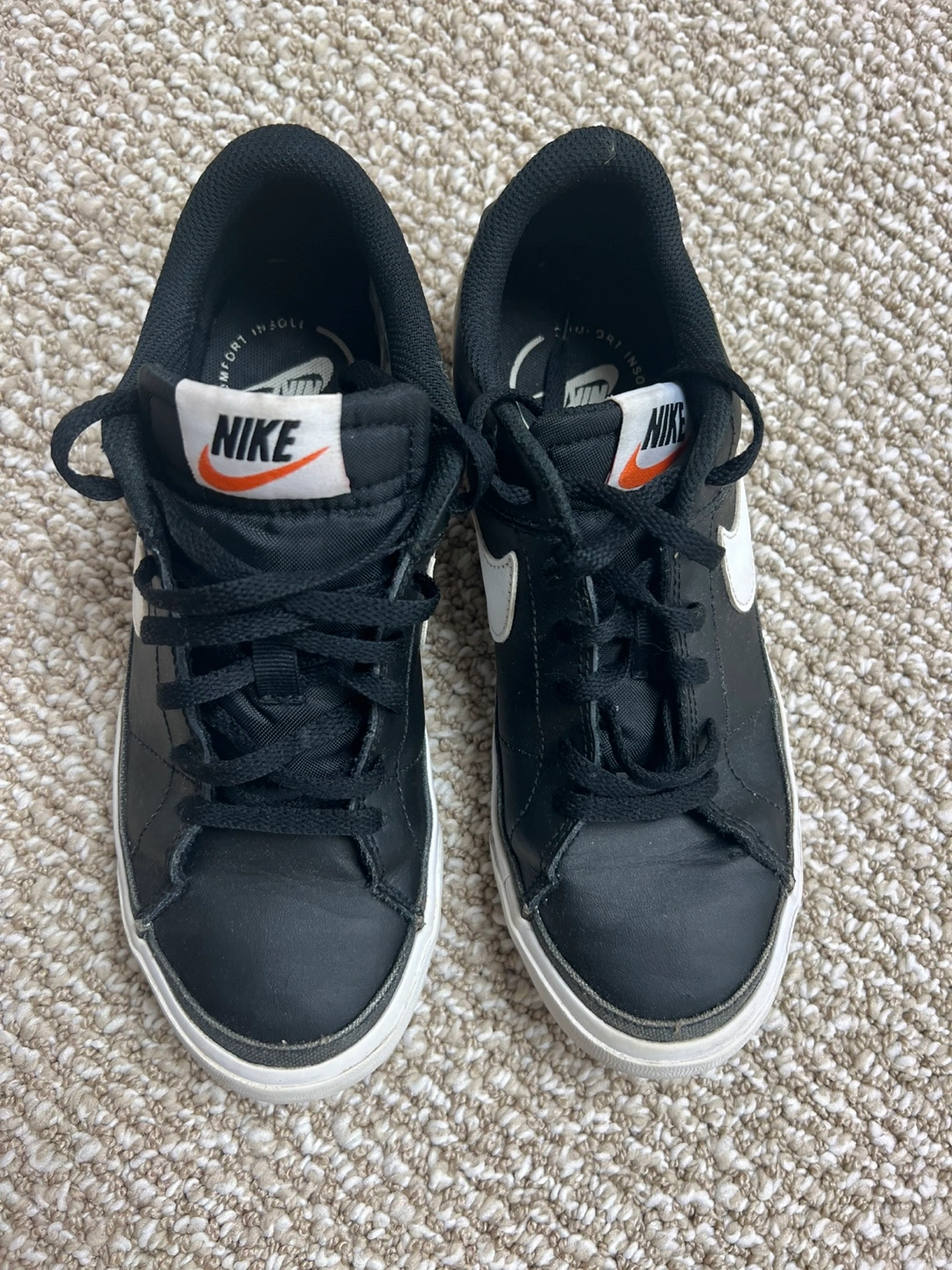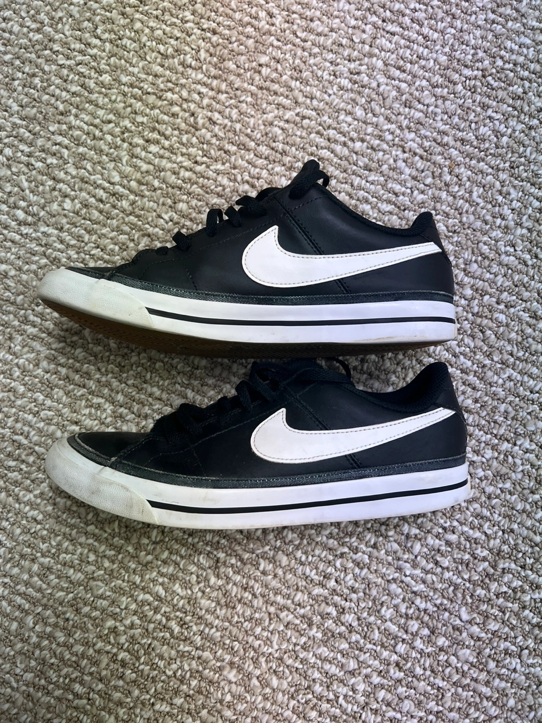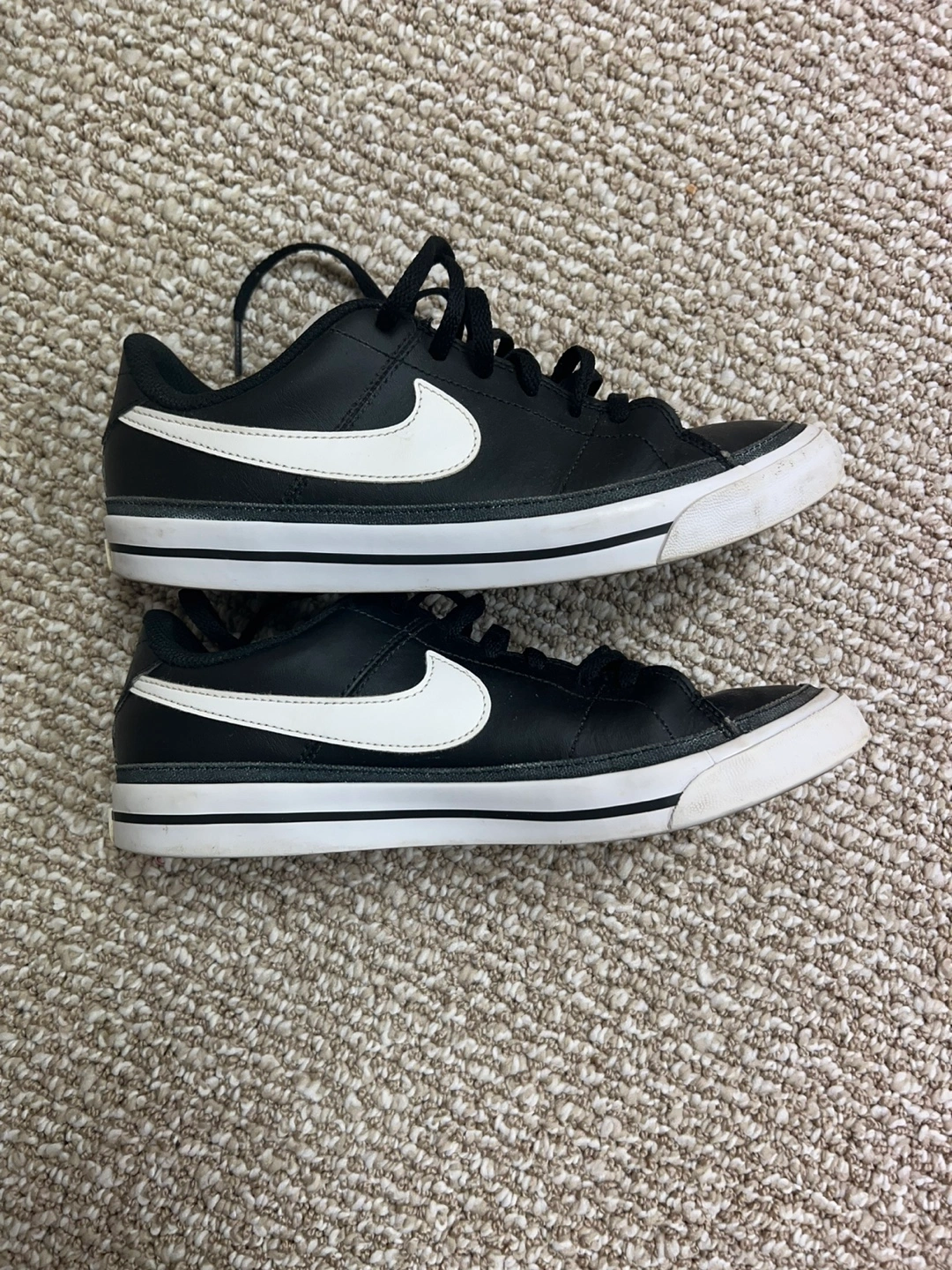 18Selling a pair of Nike Court Legacy shoes in black. They are a US size 5.5Y. These shoes have the classic Nike swoosh and would be great for everyday wear!