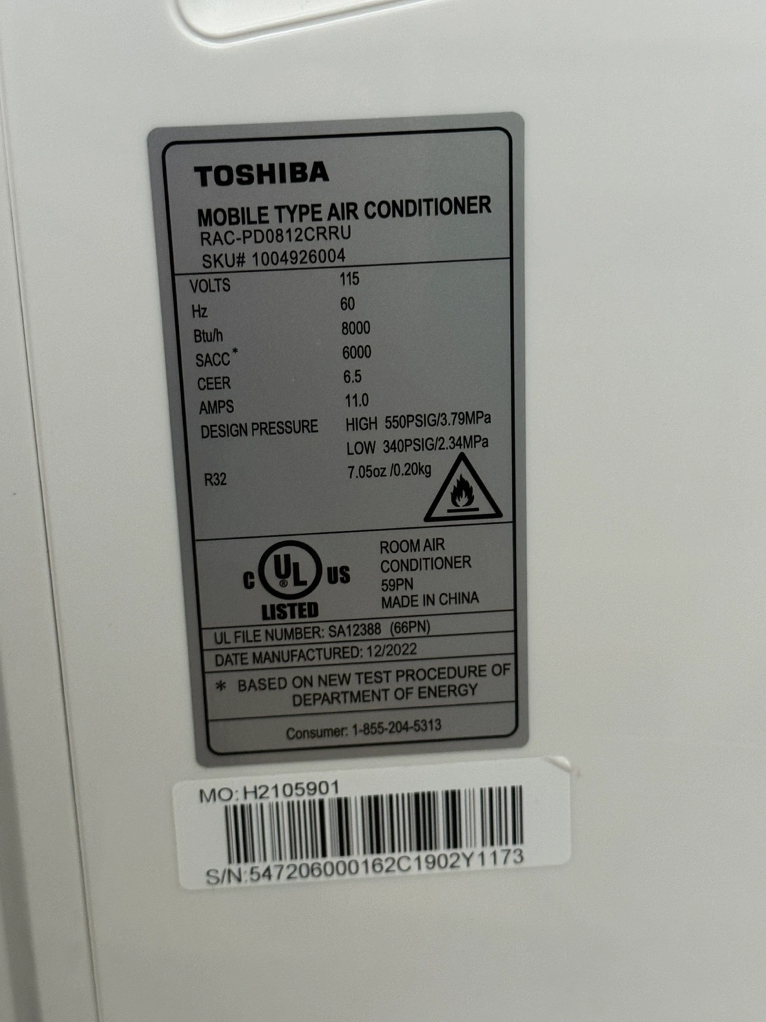 Selling a Toshiba mobile type air conditioner. The model number is RAC-PD0812CRRU. It's in great condition and ready to keep you cool! Date Manufactured: 2022 December
