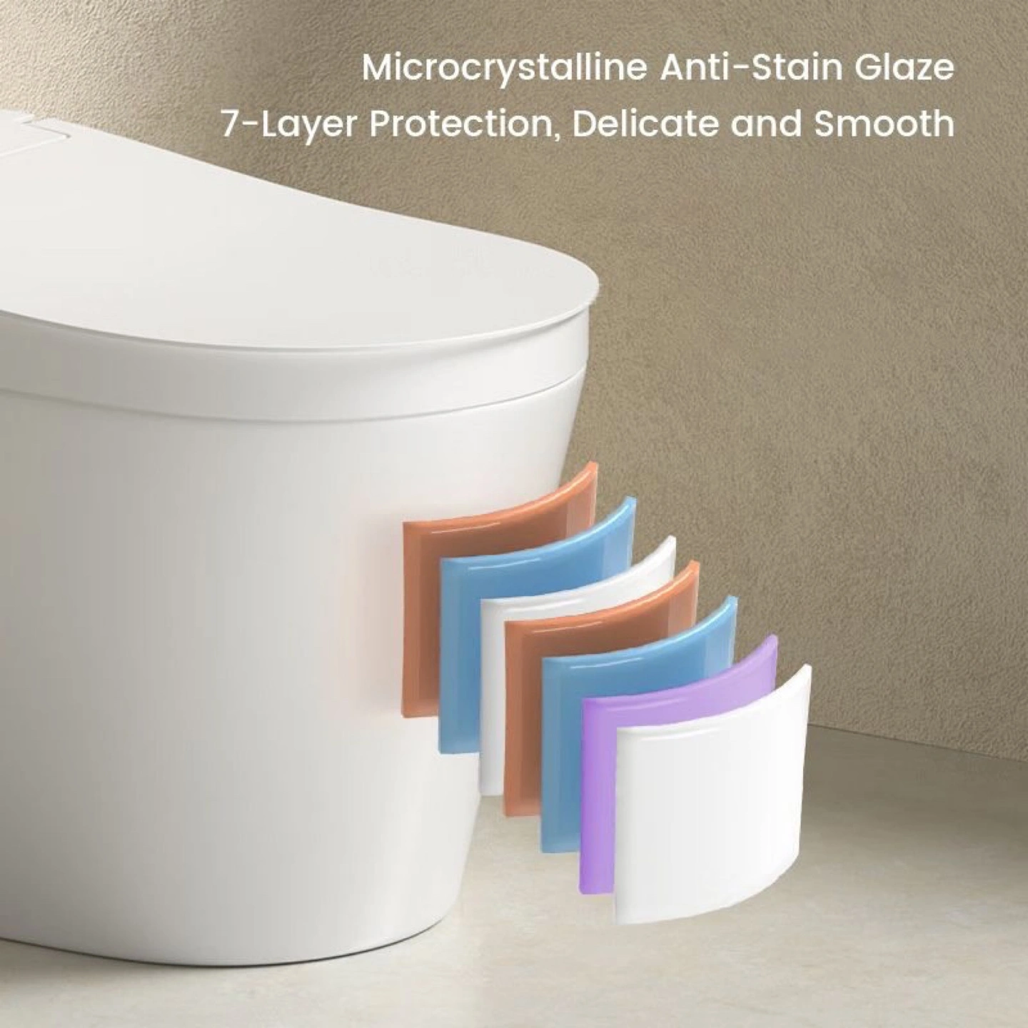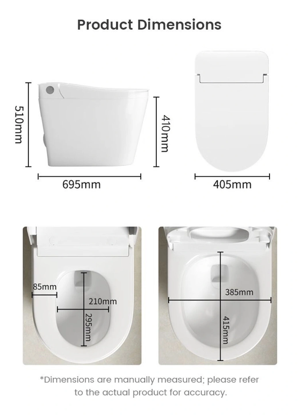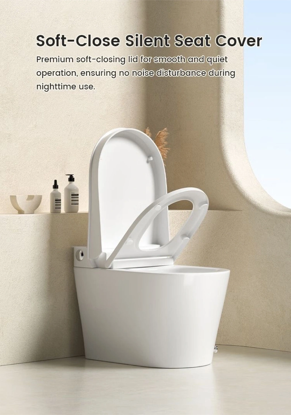Selling an Eden Flush one-piece toilet. It features a soft-close silent seat cover for smooth and quiet operation. The toilet also has an integrated ceramic tank and a damping slow-closing lid. The dimensions are approximately 510mm height, 695mm length, and 405mm width. The toilet has a microcrystalline anti-stain glaze with 7-layer protection for a delicate and smooth finish new in box local pickup