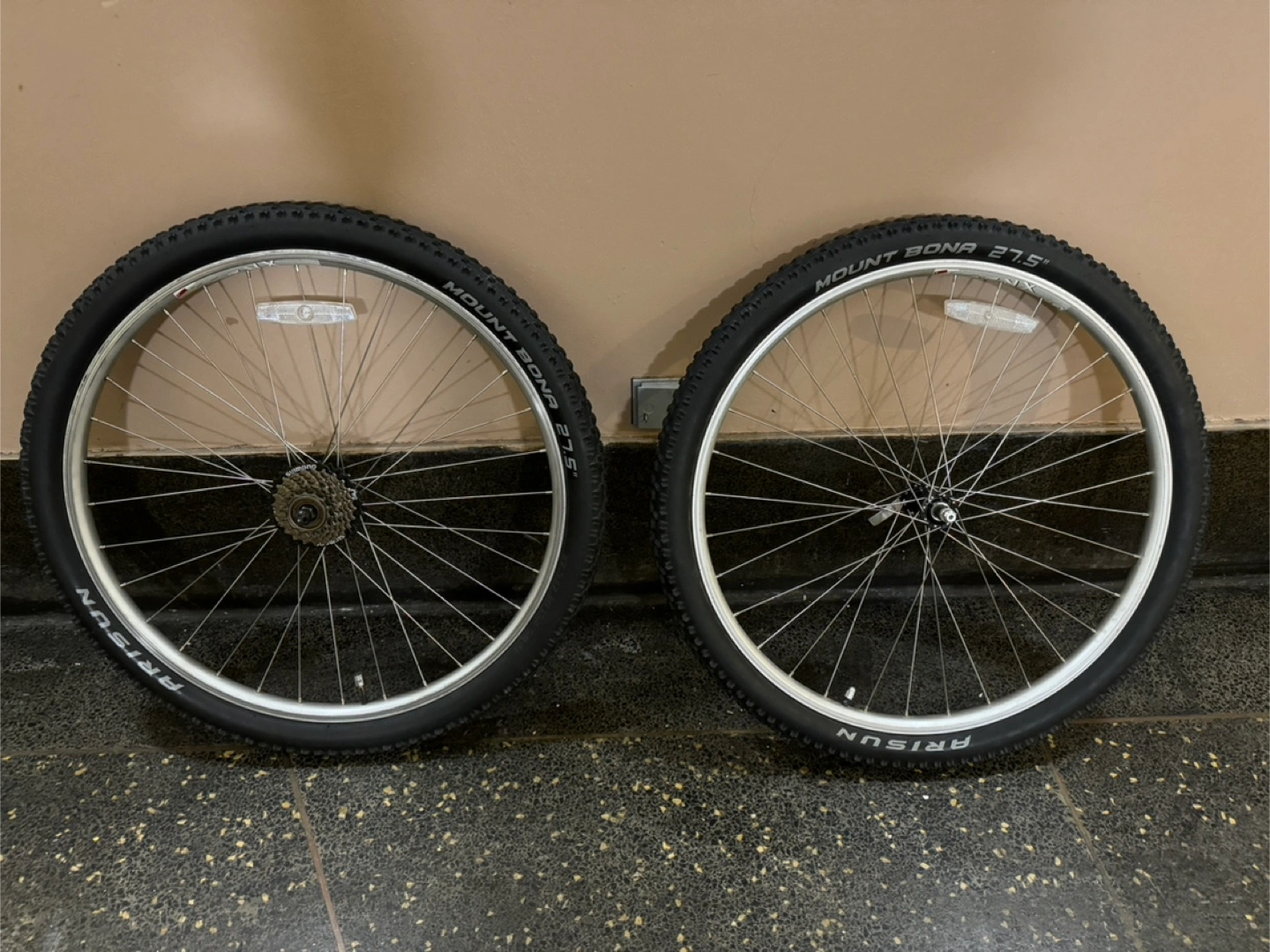 Selling a pair of Arisun Mount Bona 27.5" bike wheels. They're in good condition and ready to be used on your mountain bike! New tires, tubes and new Shimano 7 speed freewheel. Weinmann aluminum rims with quick release. Cash and carry. First come first serve.