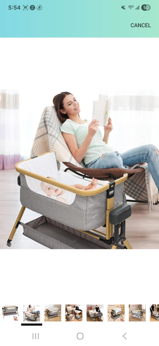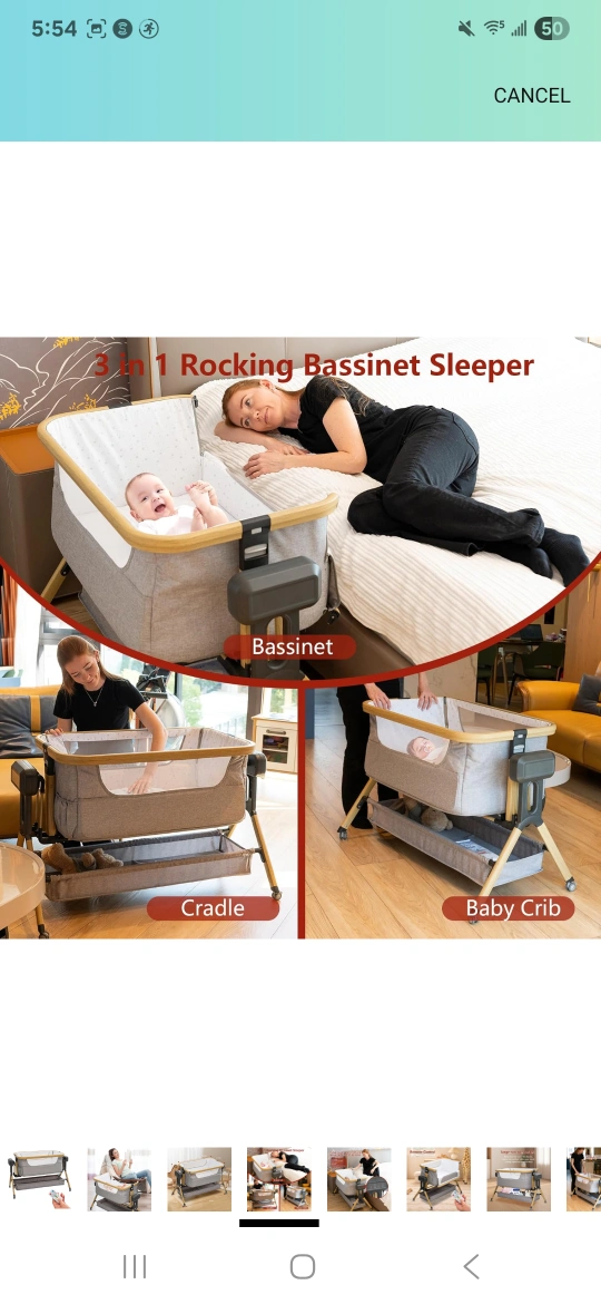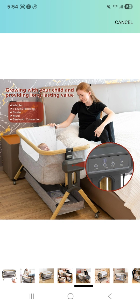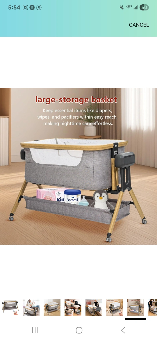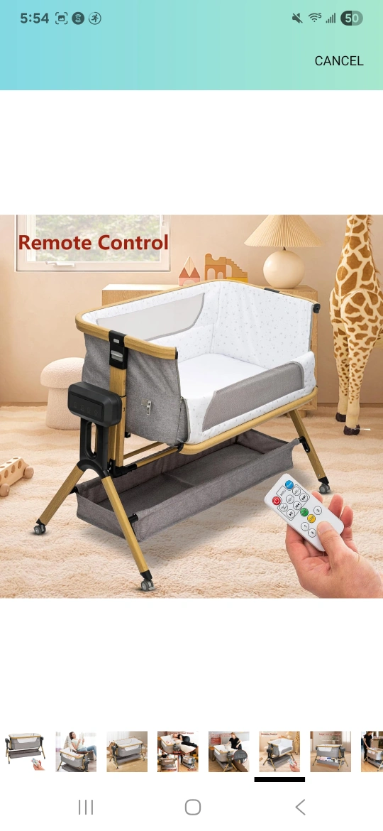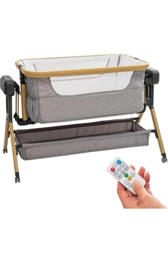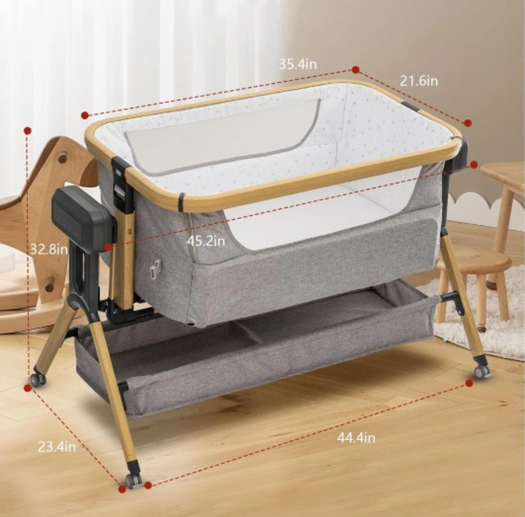 This 3-in-1 rocking bassinet sleeper can be used as a bassinet, baby crib, or cradle! It has a large storage basket to keep essential items like diapers, wipes, and pacifiers within easy reach, making nighttime care effortless. The dimensions are 35.4in x 21.6in x 32.8in. The bassinet also features a remote control.