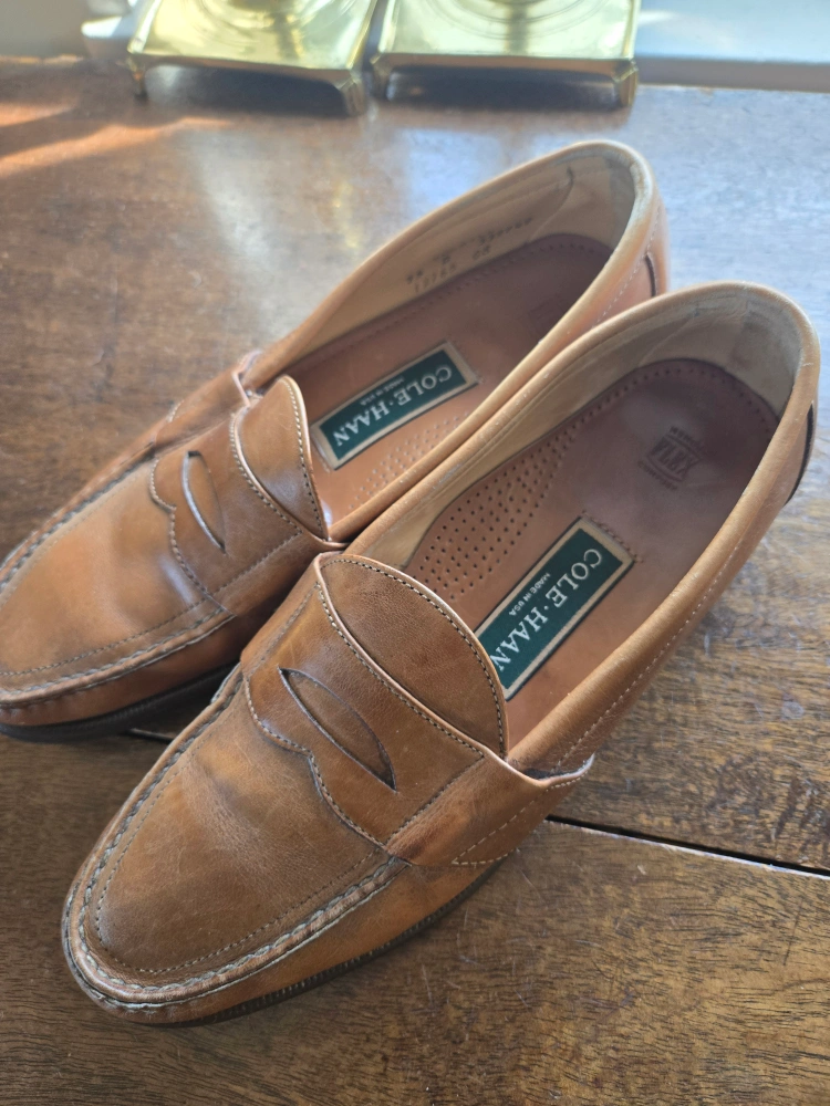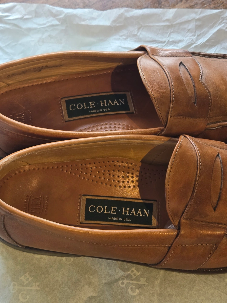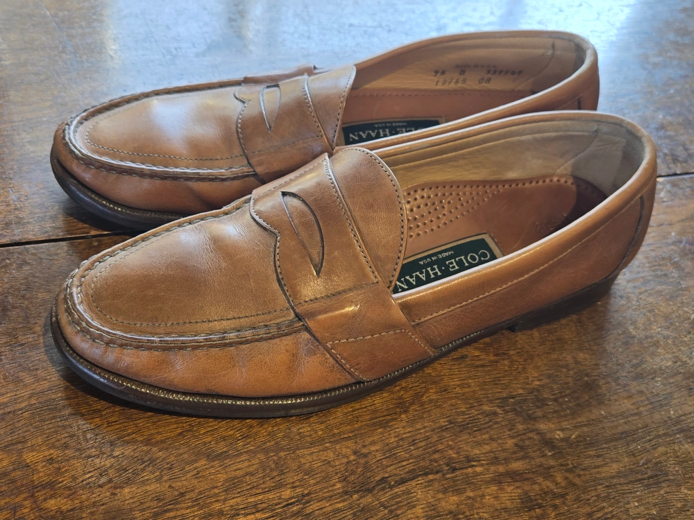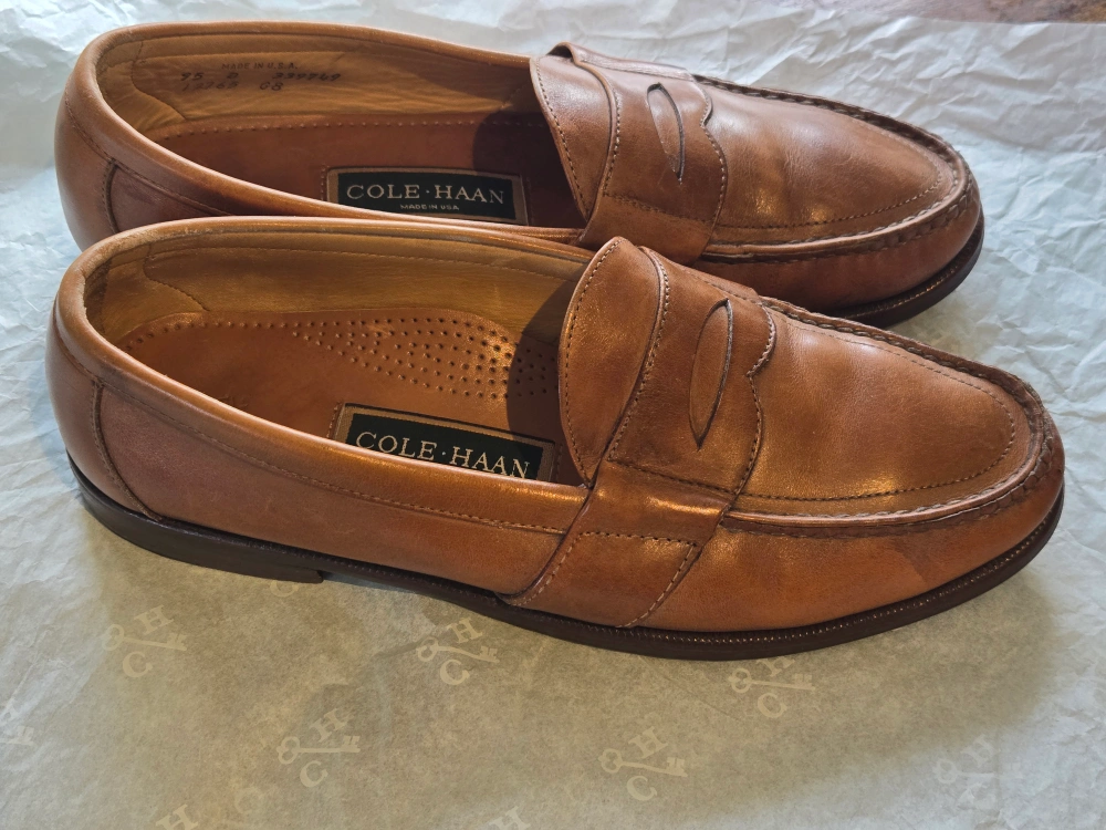 Selling a pair of Cole Haan pinch classic leather loafers in size 9.5. They are in VG used condition.
