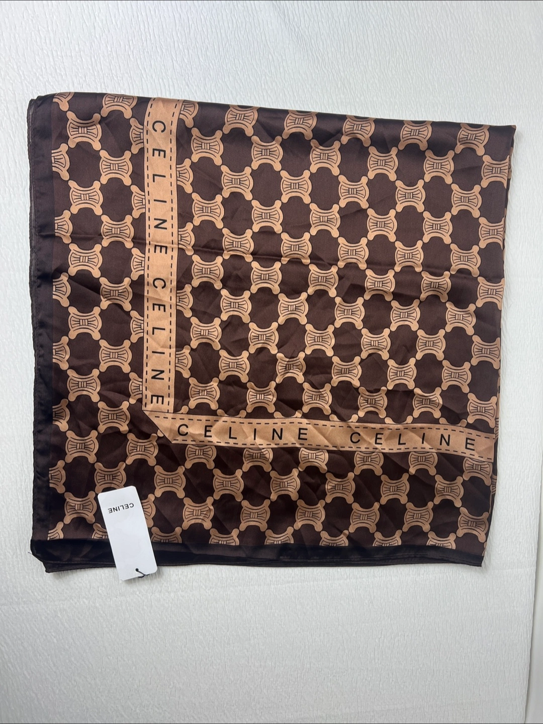 Selling a beautiful Celine scarf in a brown silk material! The scarf features the iconic Celine logo pattern. It's a stylish accessory to elevate any outfit