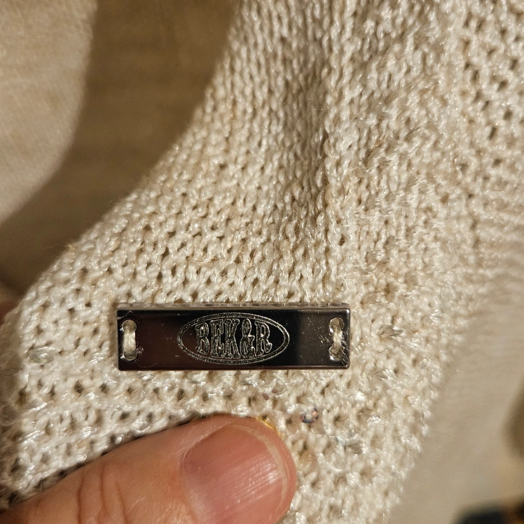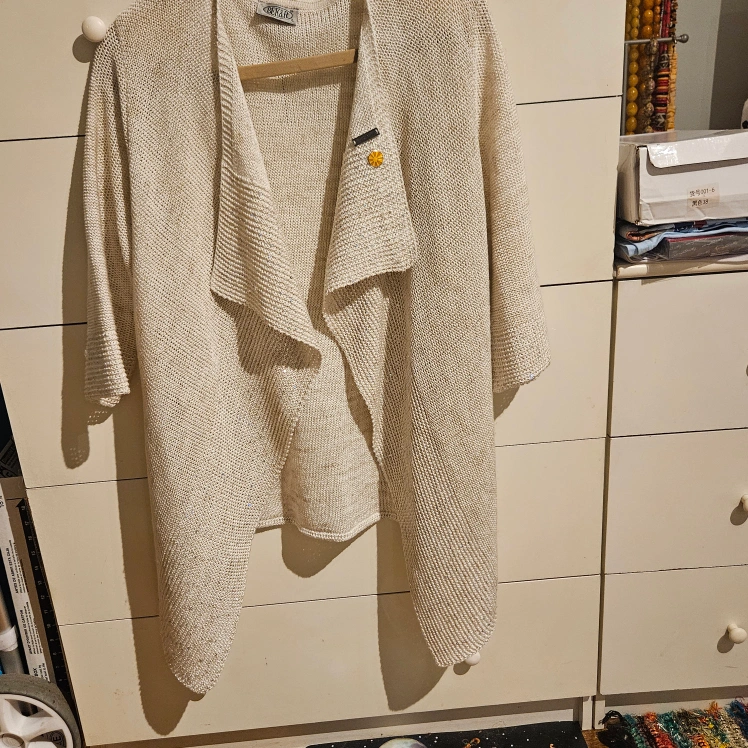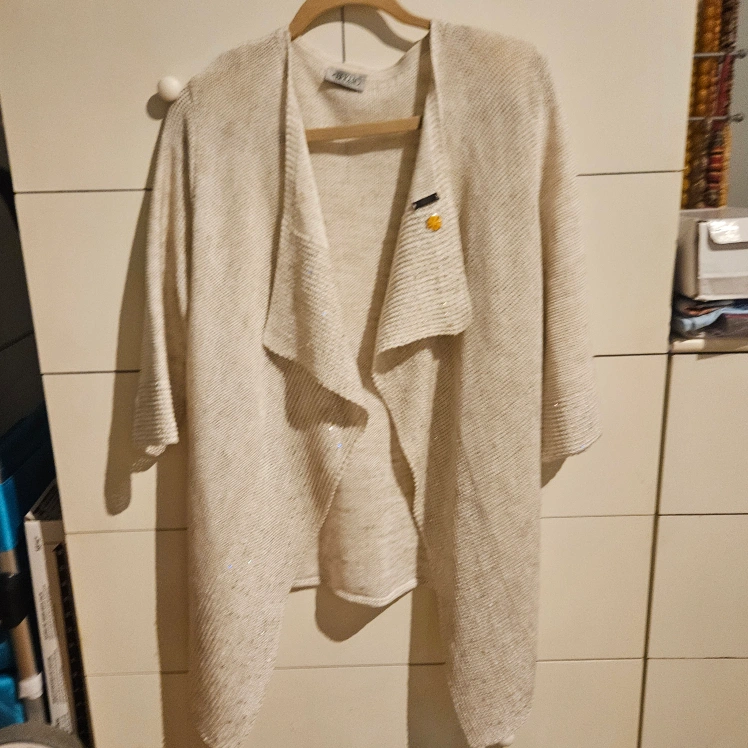 Selling a beige knit cardigan from BEK&R. It's in great condition and ready for a new Lady