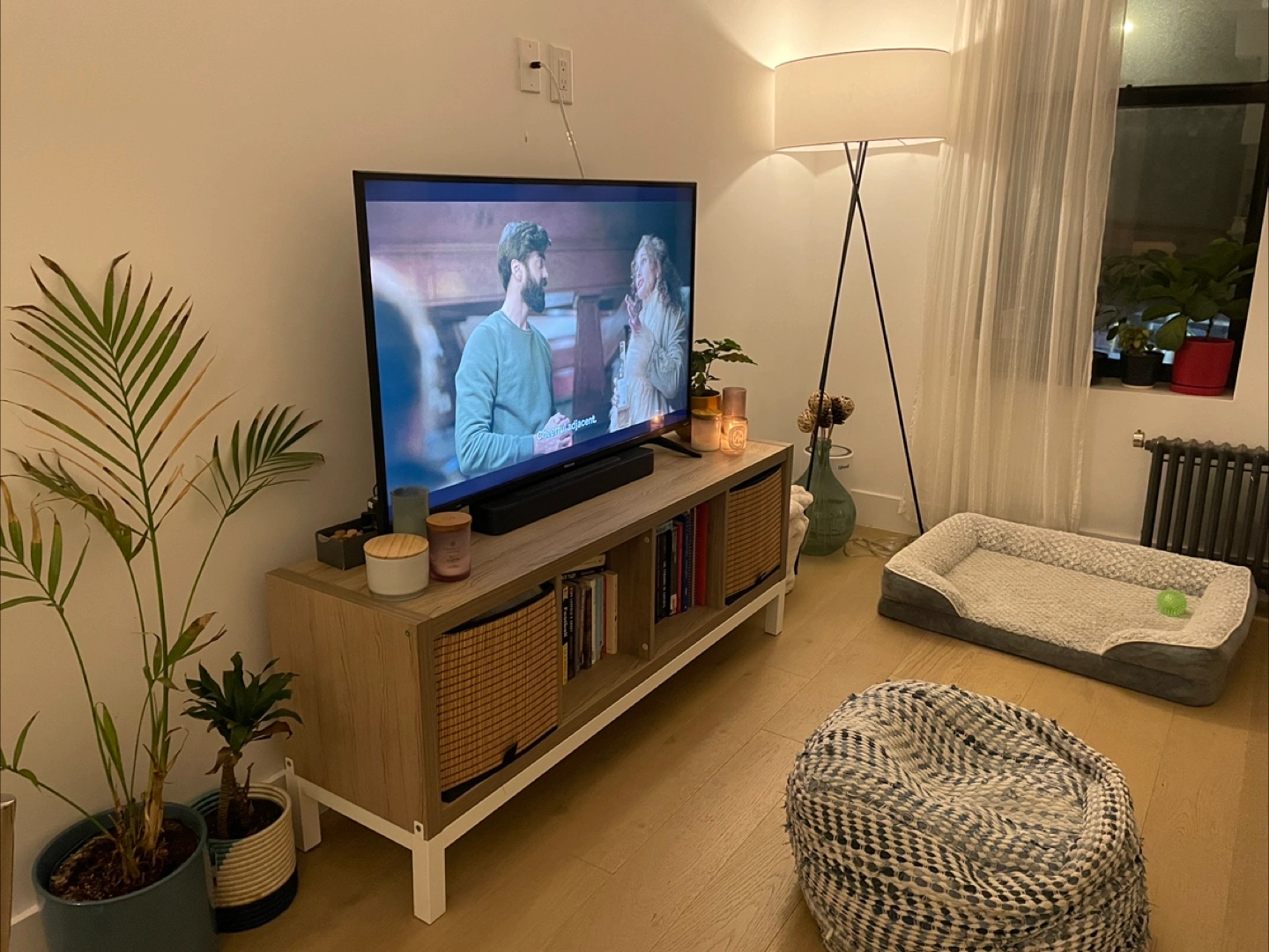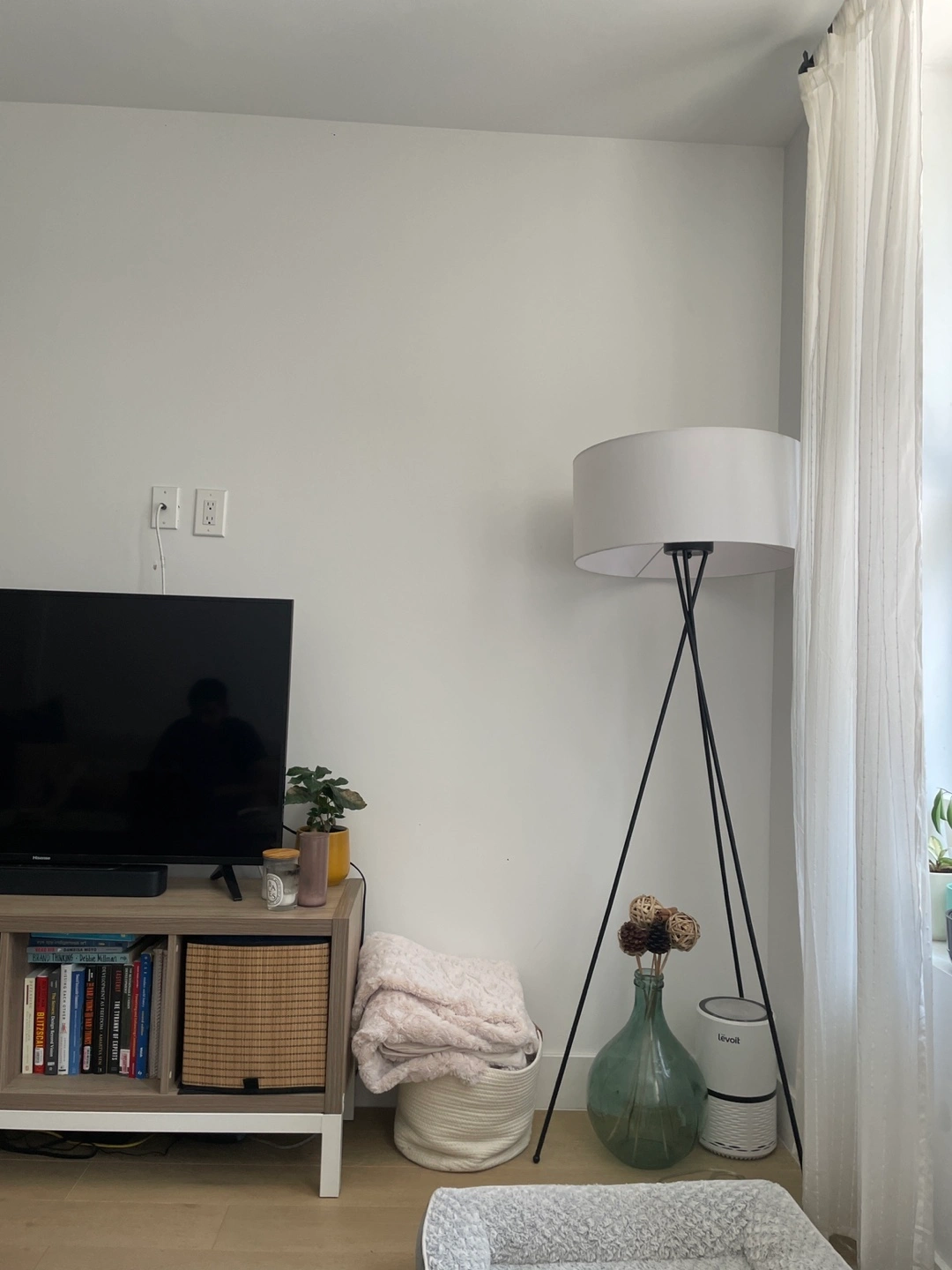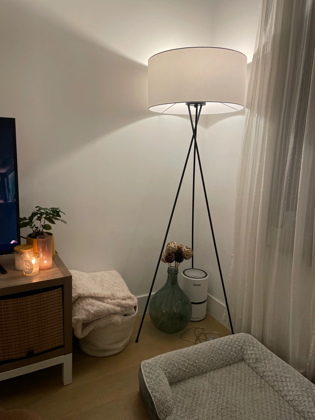 5Selling a stylish tripod floor lamp! It's in great condition and adds a modern touch to any room. The lamp stands 66 inches tall and has a 24-inch diameter shade. Perfect for living rooms, bedrooms, or offices!