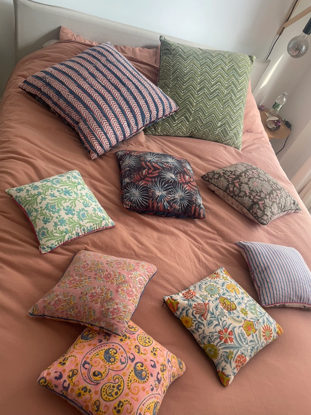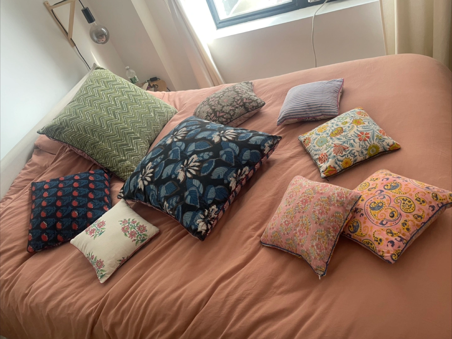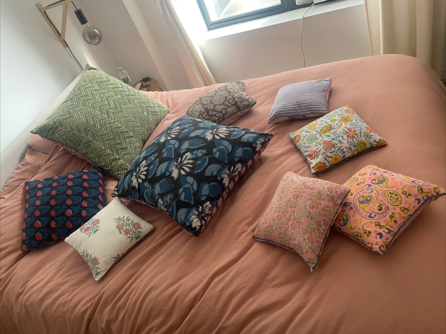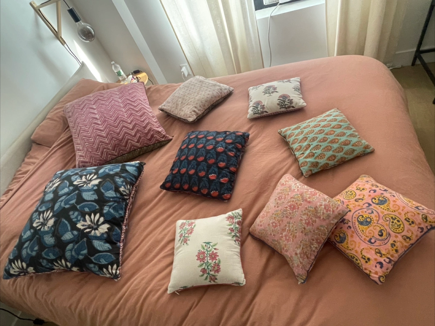5I'm selling a collection of decorative throw pillows. They come in various colors and patterns. Perfect for adding a touch of style to your living room or bedroom! 5 small — $10 each 2 medium — $20 each 2 large — $30 each $80 for the whole set!