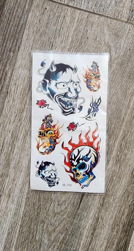 1000+Sheet of temporary tattoos featuring skull and oni (demon) designs! Great for parties, costumes, or just for fun