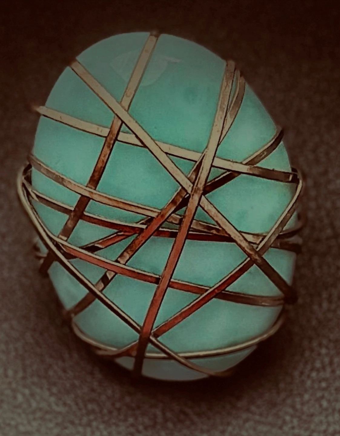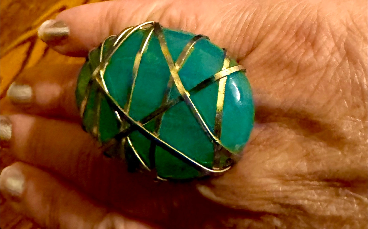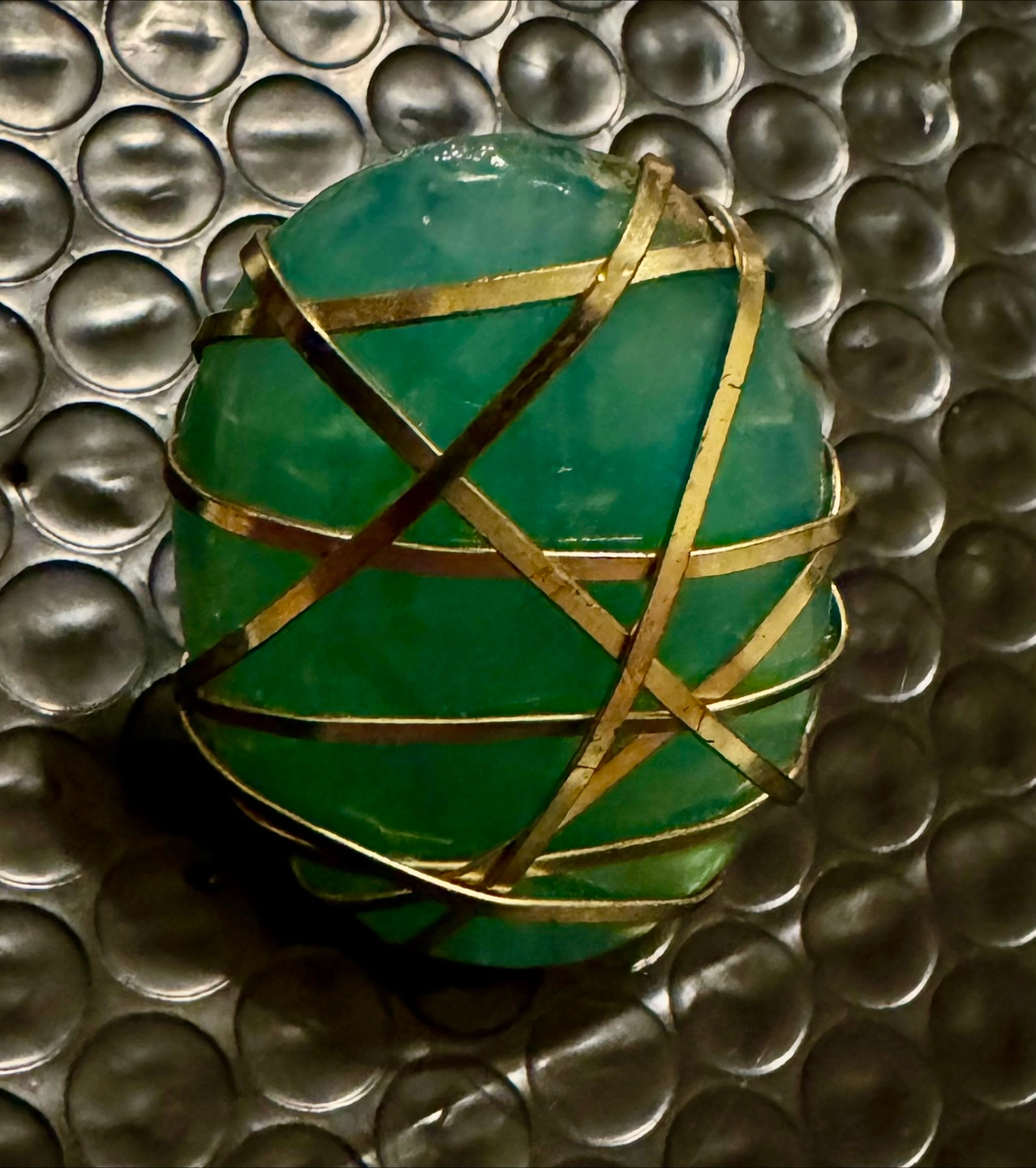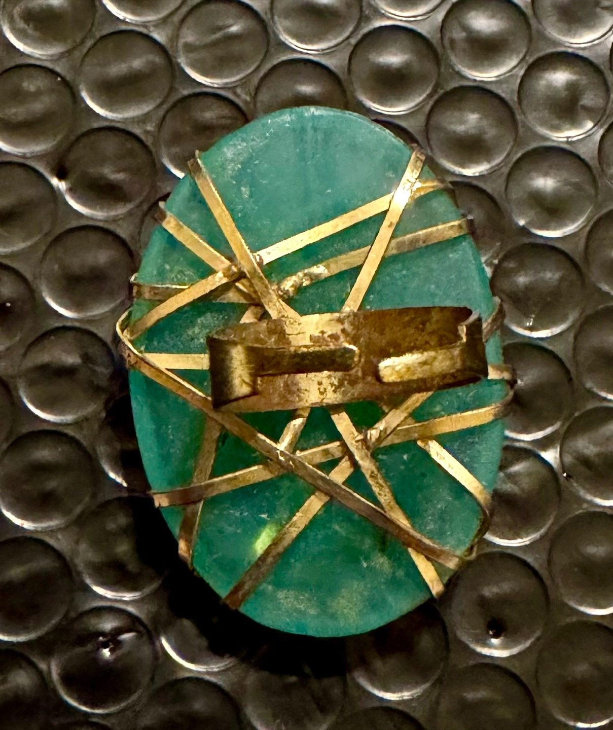 Vintage boho wire-wrapped statement green Jasper agate ring features antique gold plating with a touch of tarnish for that rustic look. Deco art, One of a kind! Private collection Adjustable to any size Comes with gift bag