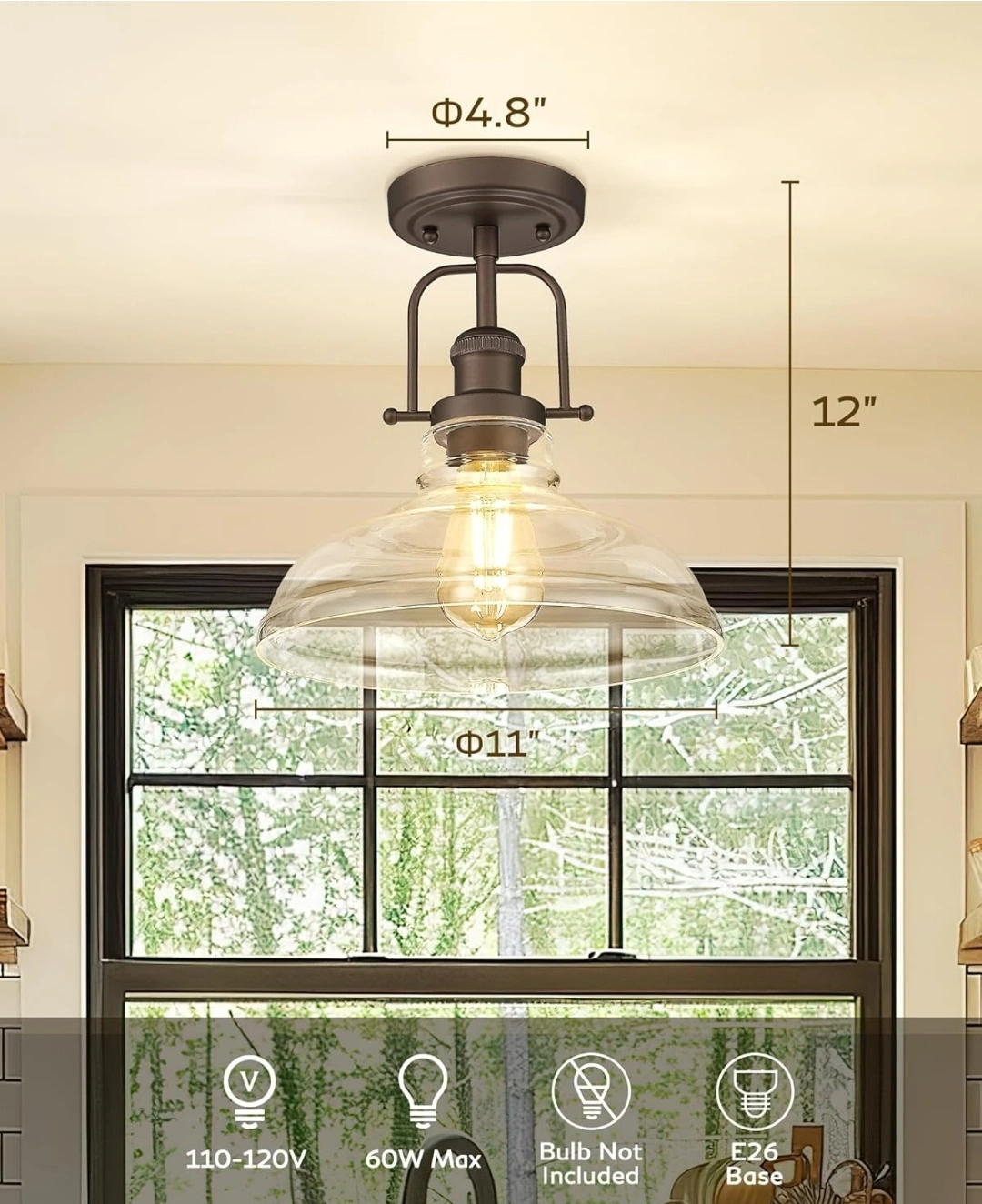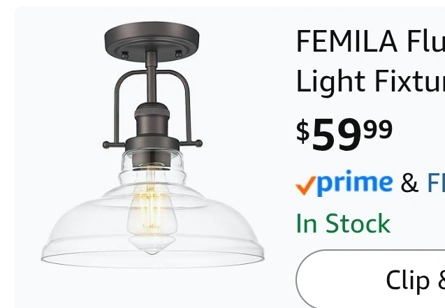 Selling a FEMILA flush mount ceiling light fixture. It's a stylish way to brighten up any room. The dimensions are approximately 12 inches in height, with a diameter of 11 inches for the shade and 4.8 inches for the base. It originally retails for $59.99