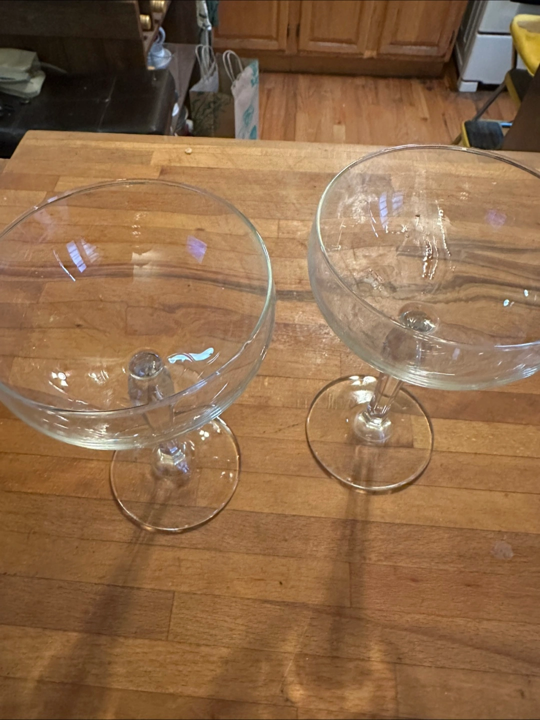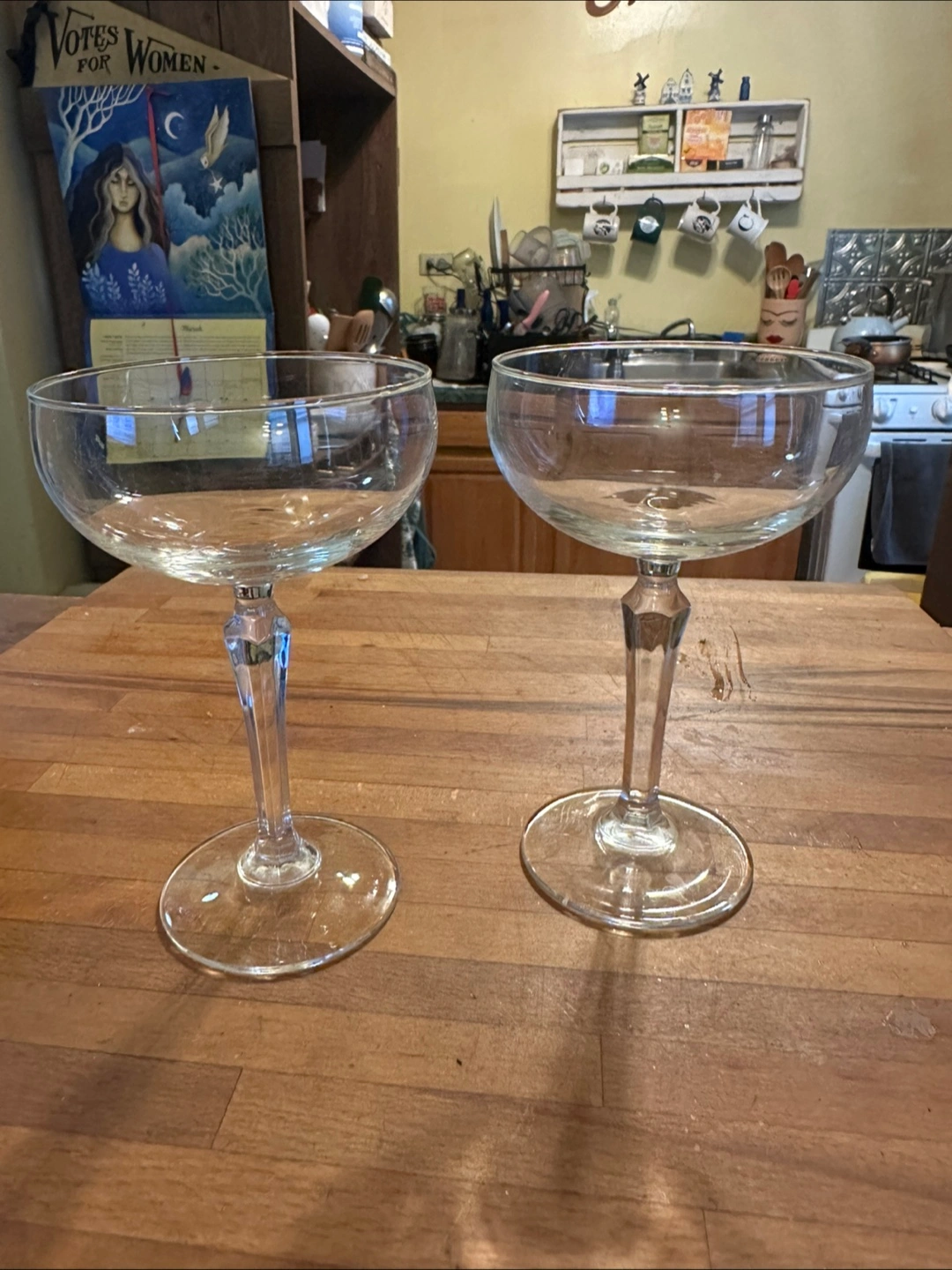 189Selling a set of two coupe glasses. They are in great condition and ready for your next cocktail party or celebration! These elegant glasses are perfect for serving champagne, martinis, or any other fancy drink you desire