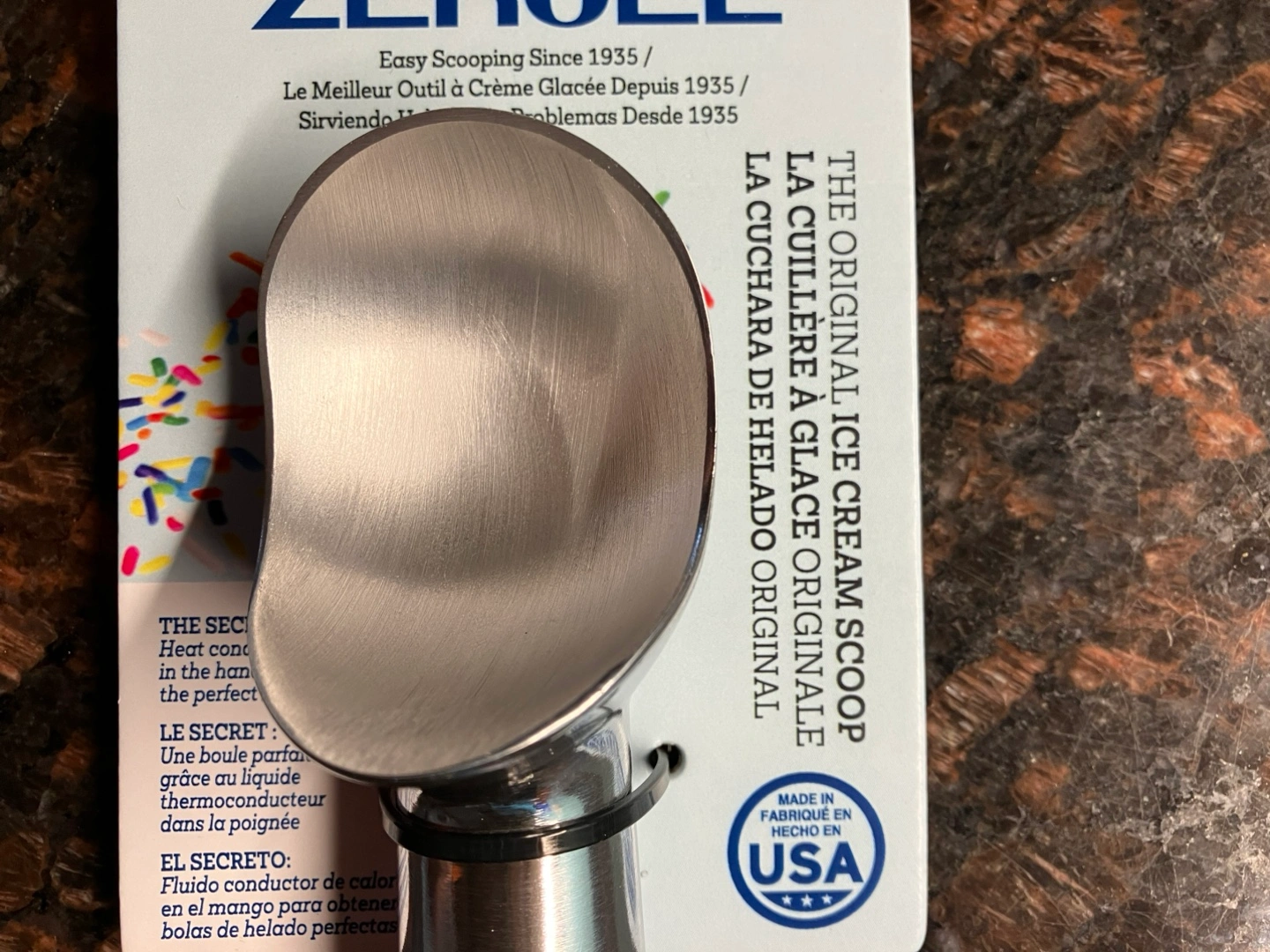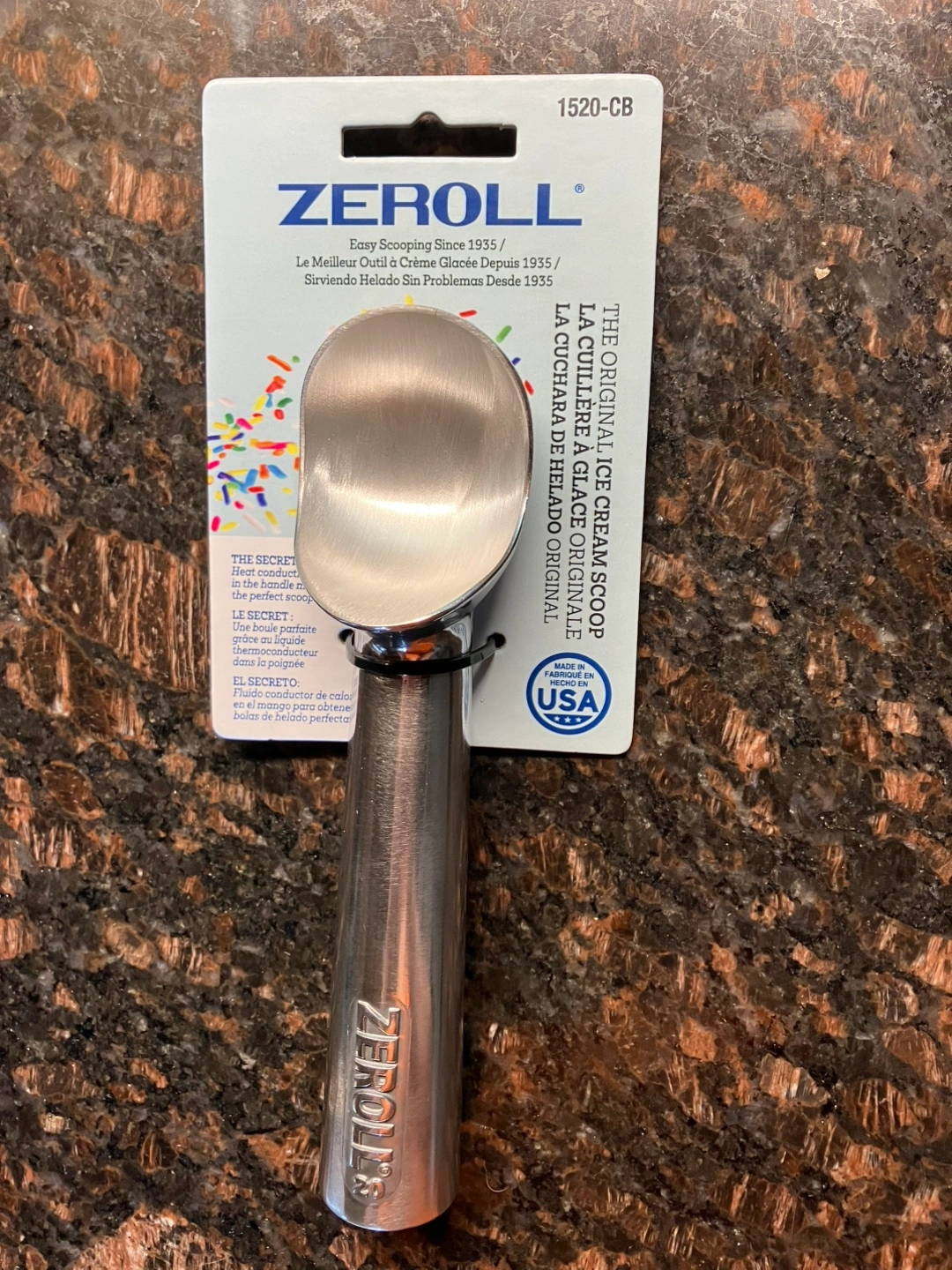 443I'm selling a Zeroll Original Ice Cream Scoop! It's in new condition and ready to make serving ice cream a breeze. The liquid in the handle responds to the heat from your hand, allowing you to scoop out a perfect portion with minimal effort. Made in the USA! Cash and pick up only. Check out my other listings too!
