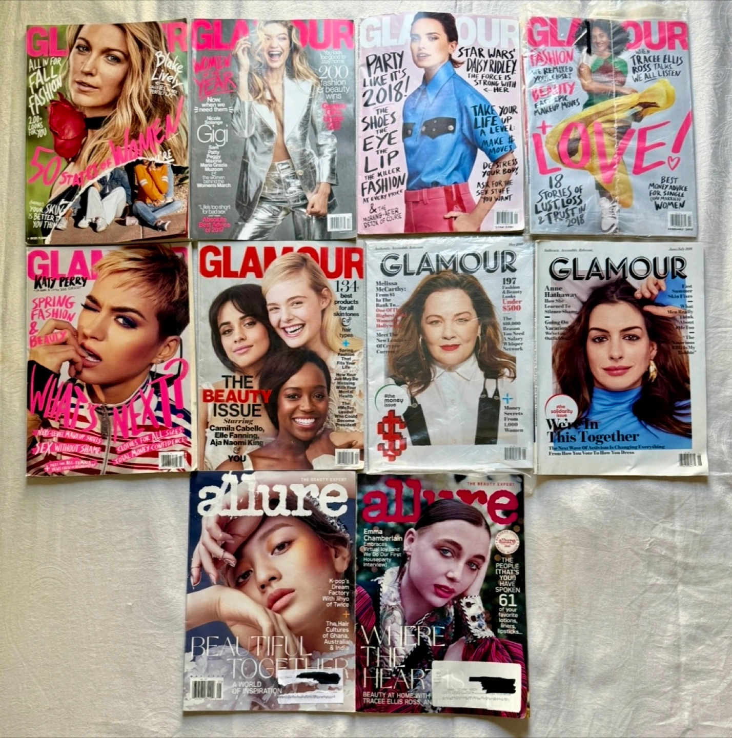 86Selling a collection of Glamour and Allure magazines! A mix of fashion, beauty, and celebrity features from various years. Glamour magazines Sept 2017, Dec 2017-June July 2018. Allure May, June/ July 2020. Cash and pickup deal only. I am close to Myrtle and Wyckoff Aves Brooklyn.