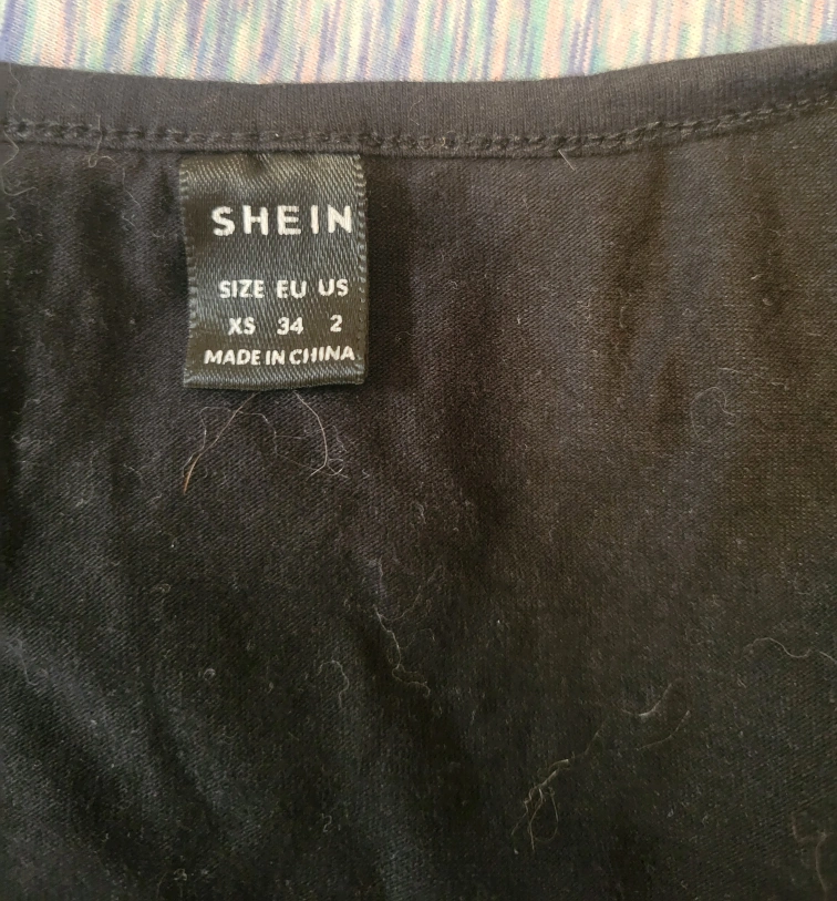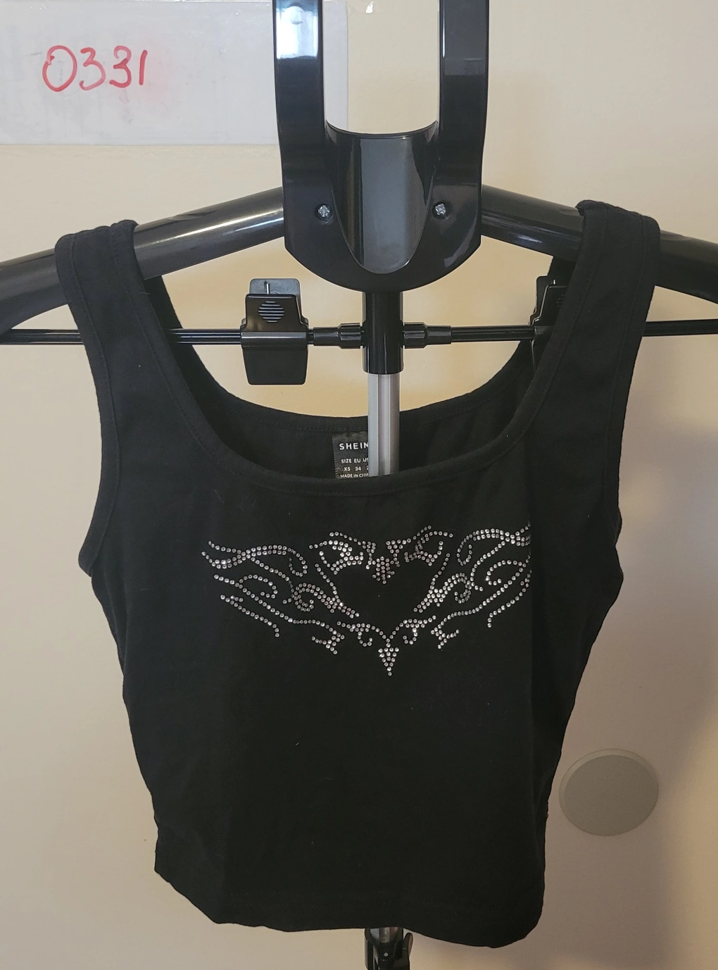 92Selling a cute black tank top from Shein! It's a size XS. The front has a fun, sparkly design. Perfect for a casual look!